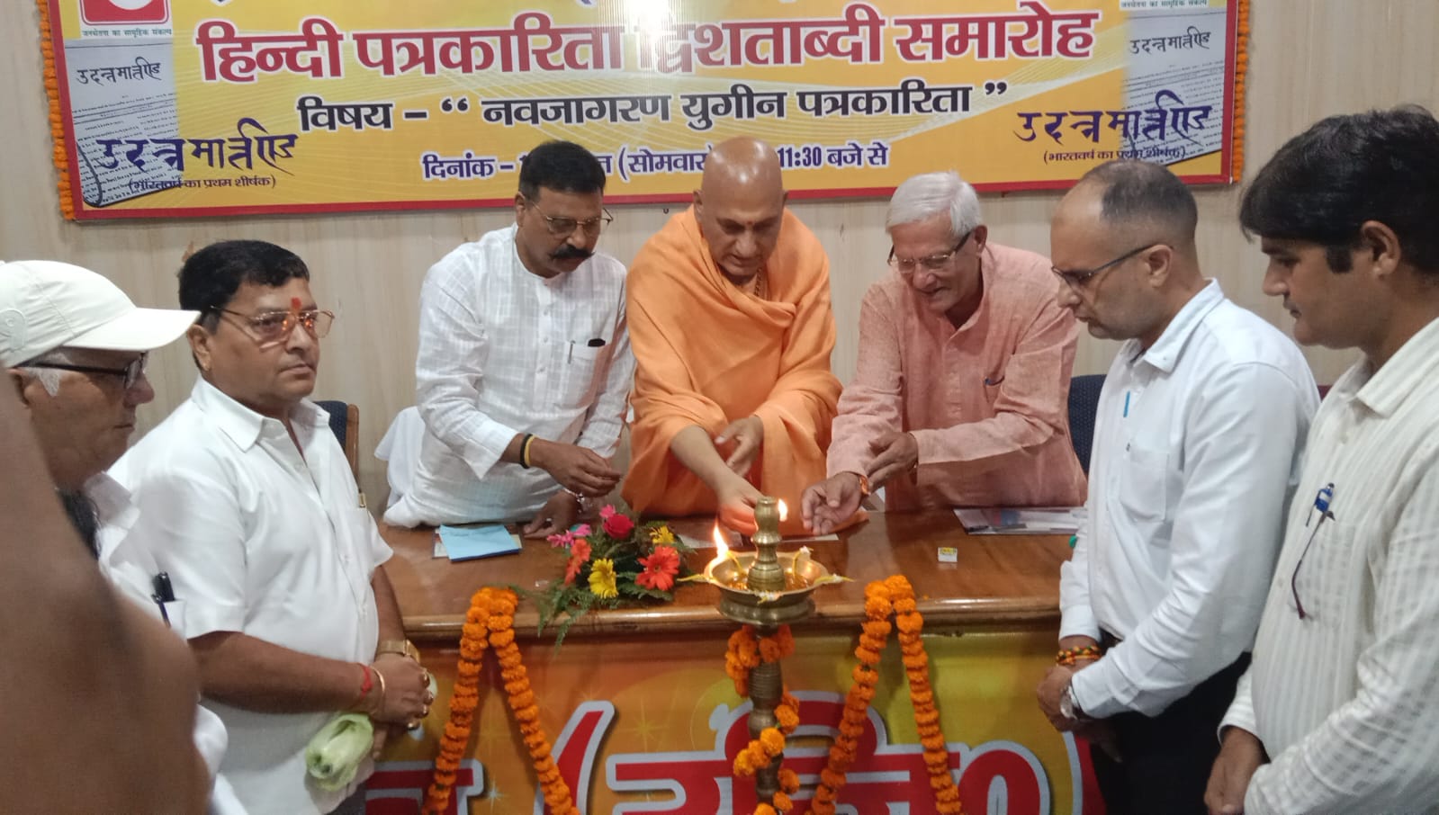 प्रेस क्लब सभागार में आयोजित हिंदी पत्रकारिता द्विशताब्दी समारोह का शुभारंभ मुख्य अतिथि एनयूजे आई के राष्ट्रीय अध्यक्ष रास बिहारी, जूना पीठाधीश्वर आचार्य महामंडलेश्वर स्वामी अवधेशानंद गिरि, प्रेस क्लब अध्यक्ष धर्मेन्द्र चौधरी और महामंत्री दीपक मिश्रा ने संयुक्त रूप से दीप प्रज्वलित कर किया।