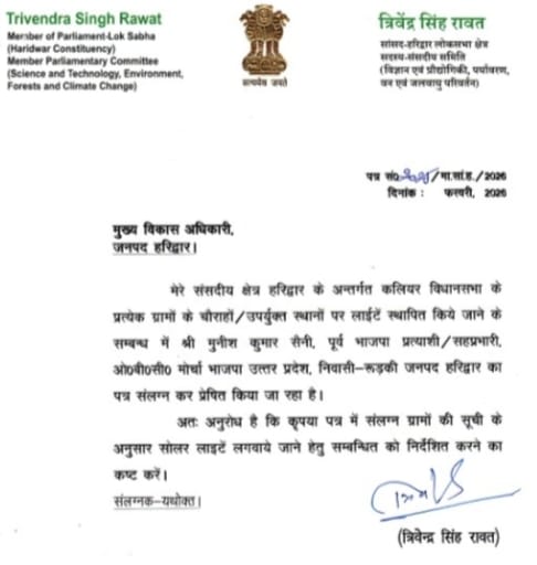 सांसद त्रिवेंद्र सिंह रावत ने तत्काल संज्ञान लेते हुए मुख्य विकास अधिकारी को आवश्यक कार्रवाई के निर्देश जारी किए हैं। साथ ही स्ट्रीट लाइट स्थापना के संबंध में औपचारिक पत्राचार भी किया गया है, जिससे कार्य प्रक्रिया जल्द शुरू होने की उम्मीद जताई जा रही है।