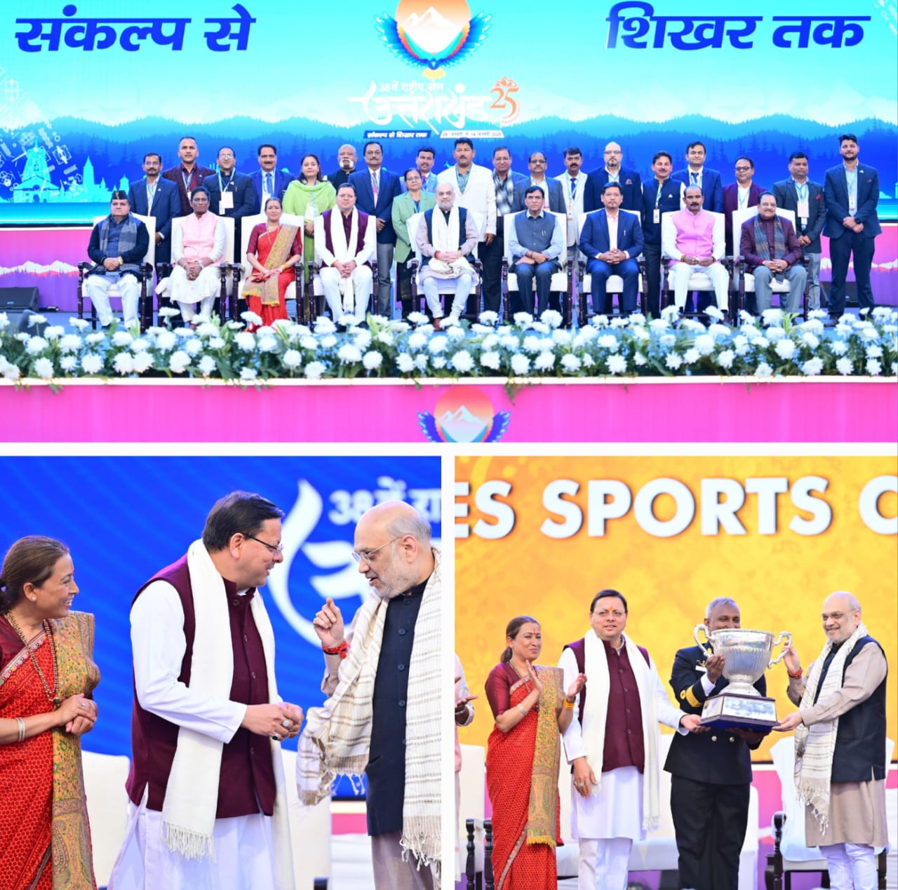 केंद्रीय गृह मंत्री अमित शाह ने उत्तराखण्ड के चारों धामों के देवी देवताओं को प्रणाम करते हुए कहा कि मुख्यमंत्री धामी ने उत्तराखंड के हर जिले में खेल इंफ्रास्ट्रक्चर तैयार हो गया है। उन्होंने कहा मुख्यमंत्री ने देवभूमि को राष्ट्रीय खेलों के नक्शे पर 25वें स्थान से 7वें स्थान पर लाने का कार्य किया है। राष्ट्रीय खेलों में उत्तराखंड के विजेता खिलाड़ियों ने देवभूमि को खेल भूमि बनाया है। केंद्रीय गृह मंत्री ने सभी उत्तराखंड के विजेता खिलाड़ियों को शुभकामनाएं देकर उनके उज्ज्वल भविष्य की कामना की।
