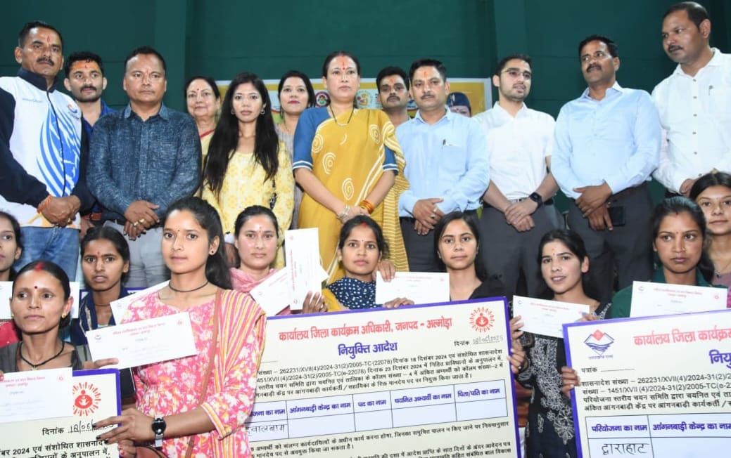 अल्मोड़ा जनपद में 50 आंगनबाड़ी कार्यकत्रियों और 512 सहायिकाओं को नियुक्ति पत्र प्रदान किए गए हैं। जनपद में 800 से ज्यादा रिक्तियां थी। कैबिनेट मंत्री रेखा आर्या ने अधिकारियों को निर्देशित किया कि बाकी पदों के लिए भी प्रक्रिया जल्द से जल्द पूरा करके नियुक्ति पत्र प्रदान करें।