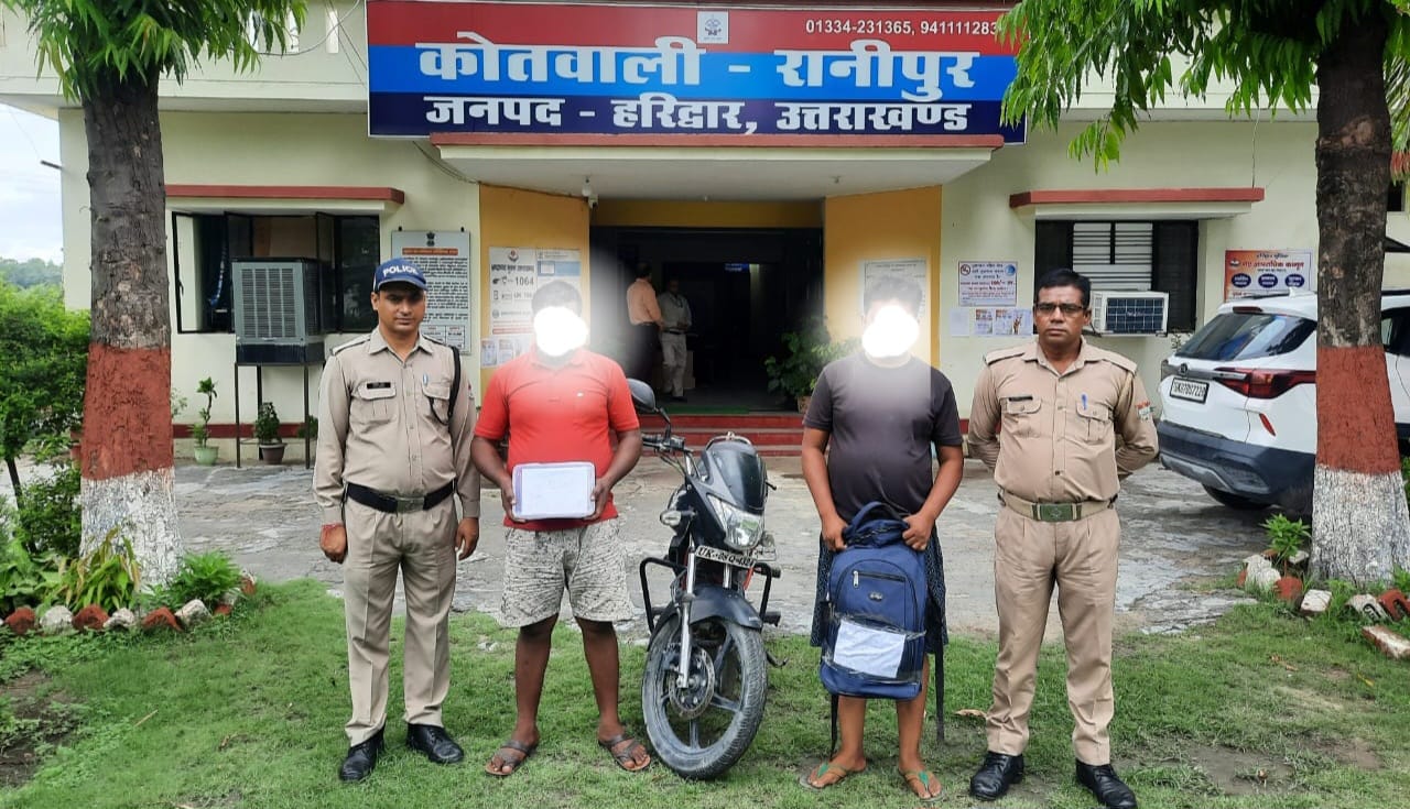 हरिद्वार – वरिष्ठ पुलिस अधीक्षक द्वारा नशा तस्करों के विरुद्ध कड़ी कार्यवाही करने हेतु दिए गए कड़े दिशा निर्देशों के क्रम में रानीपुर पुलिस व ए0एन0टी0एफ0 की संयुक्त टीम द्वारा दादूपुर सुमननगर रोड डबल पुलिया के पास से 02 अभियुक्तों दीपक कुमार व ब्रिजेश कुमार को बाइक से गांजा तस्करी करते हुए 08 किलो 20 ग्राम अवैध गाँजा के साथ दबोचा गया।