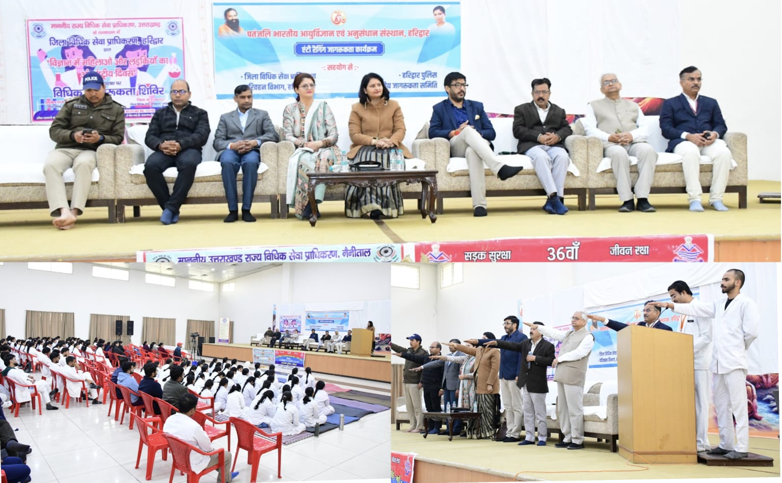 हरिद्वार – पतंजलि भारतीय आयुर्विज्ञान एवं अनुसंधान संस्थान, हरिद्वार के आयुर्वेद भवन (फेज–I) में आज एंटी-रैगिंग जागरूकता अभियान के अंतर्गत एक जागरूकता कार्यक्रम आयोजित किया गया, जिसका प्रमुख उद्देश्य विद्यार्थियों में विधिक चेतना, अनुशासन तथा उत्तरदायित्व की भावना विकसित करना था। इसी क्रम में 36वें राष्ट्रीय सड़क सुरक्षा माह (16 जनवरी से 14 फरवरी 2026) के अंतर्गत यातायात जागरूकता एवं विधिक साक्षरता कार्यक्रम का आयोजन किया गया। यह कार्यक्रम जिला विधिक सेवा प्राधिकरण, हरिद्वार, यातायात पुलिस, हरिद्वार एवं भारतीय जागरूकता समिति के संयुक्त तत्वावधान में सम्पन्न हुआ।