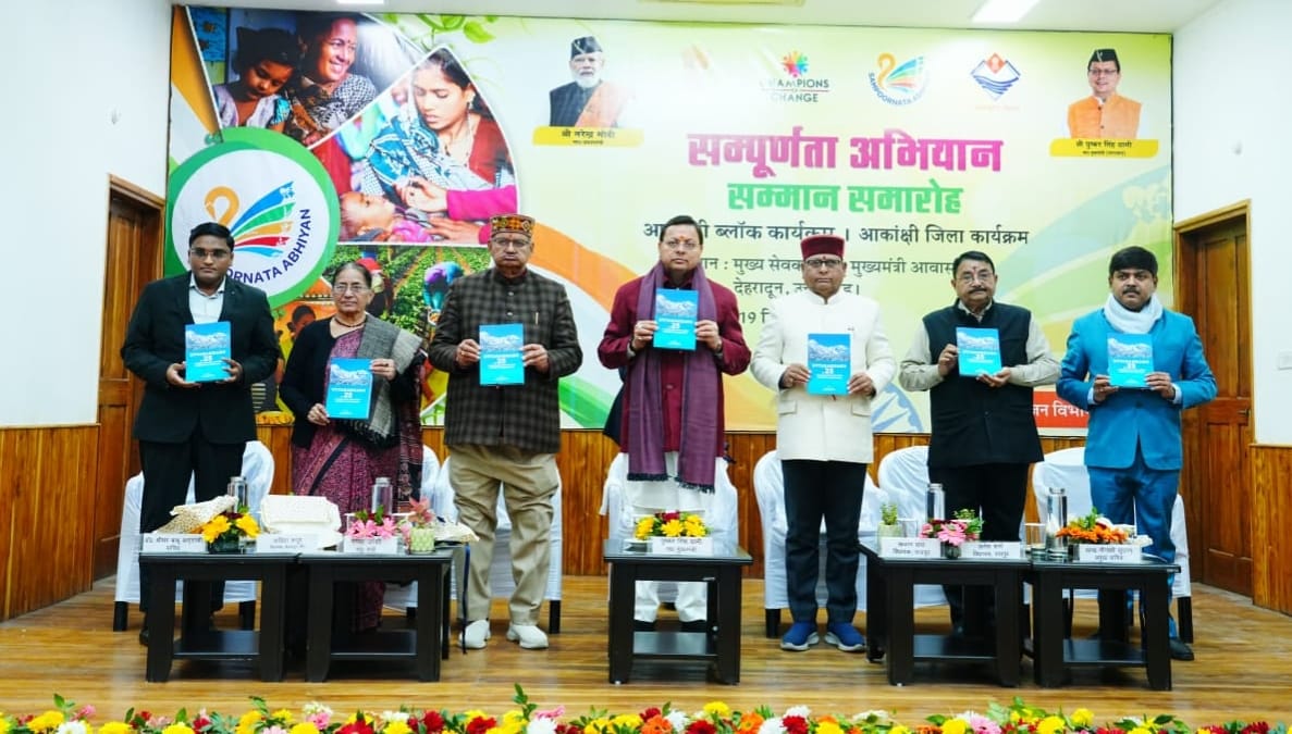 देहरादून – मुख्यमंत्री पुष्कर सिंह धामी ने शुक्रवार को मुख्य सेवक सदन, देहरादून में सम्पूर्णता अभियान सम्मान समारोह कार्यक्रम में प्रतिभाग किया। इस अवसर पर मुख्यमंत्री ने नीति आयोग, भारत सरकार द्वारा प्रदत्त प्रशस्ति पत्र एवं पदकों से आकांक्षी जनपद कार्यक्रम एवं आकांक्षी ब्लॉक कार्यक्रम में सर्वश्रेष्ठ प्रदर्शन करने वाले जिलों एवं विकासखंडों को सम्मानित किया। इस अवसर पर मुख्यमंत्री ने Uttarakhand at 25: A Himalayan State With Infinite Possibilities पुस्तक का विमोचन भी किया।