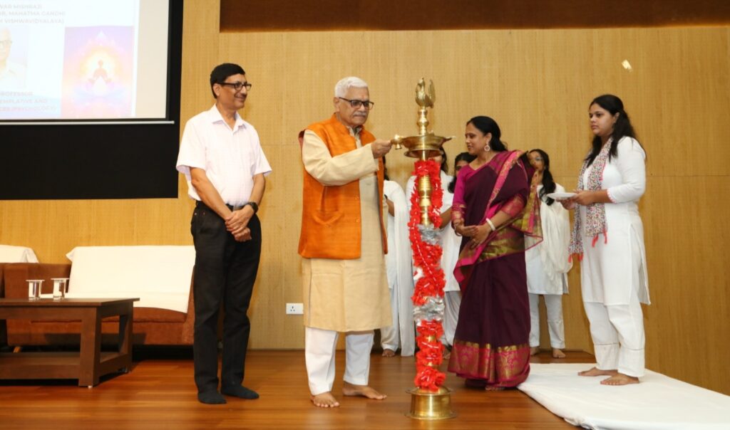 मुख्य वक्ता के रूप में पधारे महात्मा गांधी अंतर्राष्ट्रीय हिंदी विश्वविद्यालय, वर्धा के पूर्व कुलपति तथा विश्व स्तर पर विख्यात मनोवैज्ञानिक प्रो. गिरीश्वर मिश्र ने अपने विस्तृत व्याख्यान में भारतीय चिंतन परंपरा में मनोविज्ञान और पाश्चात्य दृष्टिकोण में मनोविज्ञान का तुलनात्मक मनोवैज्ञानिक विश्लेषण प्रस्तुत किया। उन्होंने स्पष्ट किया कि भारतीय परंपरा में मनोविज्ञान केवल मानसिक प्रक्रियाओं की व्याख्या तक सीमित नहीं है, बल्कि यह जीवन-दर्शन, आत्म-चिंतन, समरसता और संतुलन की ओर उन्मुख है। इसके विपरीत, पाश्चात्य मनोविज्ञान का झुकाव व्यक्ति-केंद्रितता और व्यवहार की बाह्य अभिव्यक्तियों की ओर अधिक है।