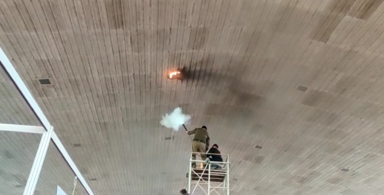 हरिद्वार – हरिद्वार स्थित प्रेमनगर आश्रम के गोवर्धन हाल में आग लगने से हड़कंप मच गया। गनीमत रही कि आग पर वक्त रहते काबू पा लिया गया, नही तो कोई बड़ा हादसा भी हो सकता था। जिस हॉल में ये आज लगी वहाँ इंडिया डेवलपमेंट एक्सपो लगाई गई है। कैबिनेट मंत्री सतपाल महाराज इस एक्सपो का उद्घाटन करने वाले थे। लेकिन मंत्री के आने से पूर्व यहां हॉल में लगी सीलिंग में चिंगारी उठने लगी। देखते ही देखते चिंगारी से आग लग गई। आनन फानन में निजी कर्मियों और पुलिस के जवानों ने सीढ़ी पर चढ़कर आग पर काबू पा लिया। बताया जा रहा है कि शॉट शर्किट के कारण हॉल की सीलिंग में ये आग लगी है। वही फायर ब्रिगेड की गाड़ी भी मौके पर पहुंच गई थी लेकिन उससे पहले ही आग पर काबू पा लिया गया।