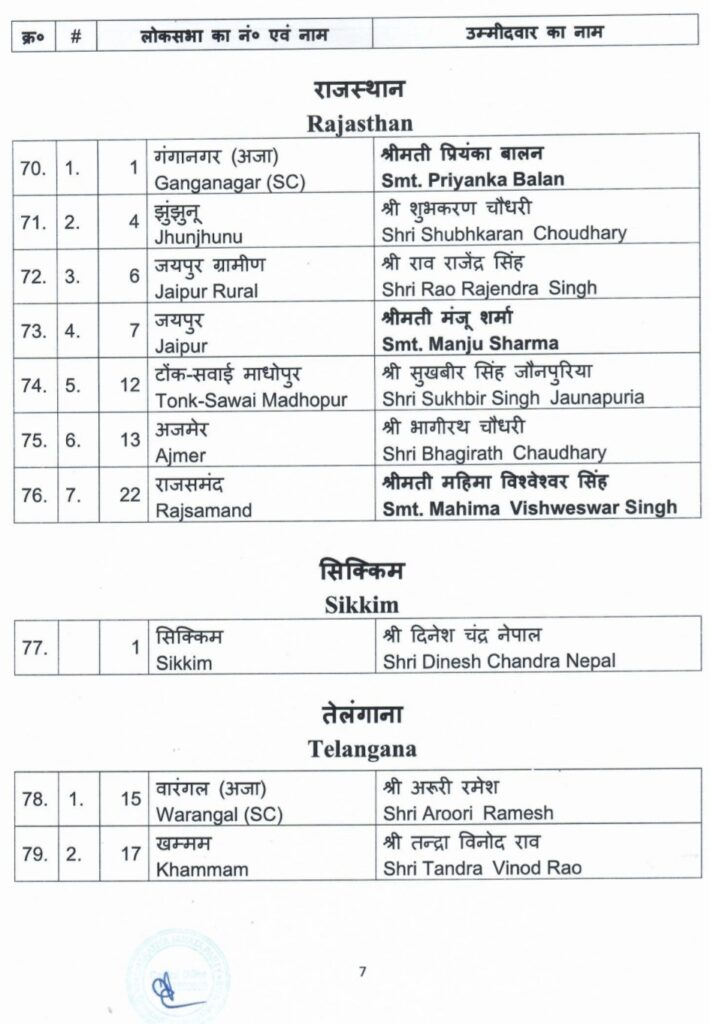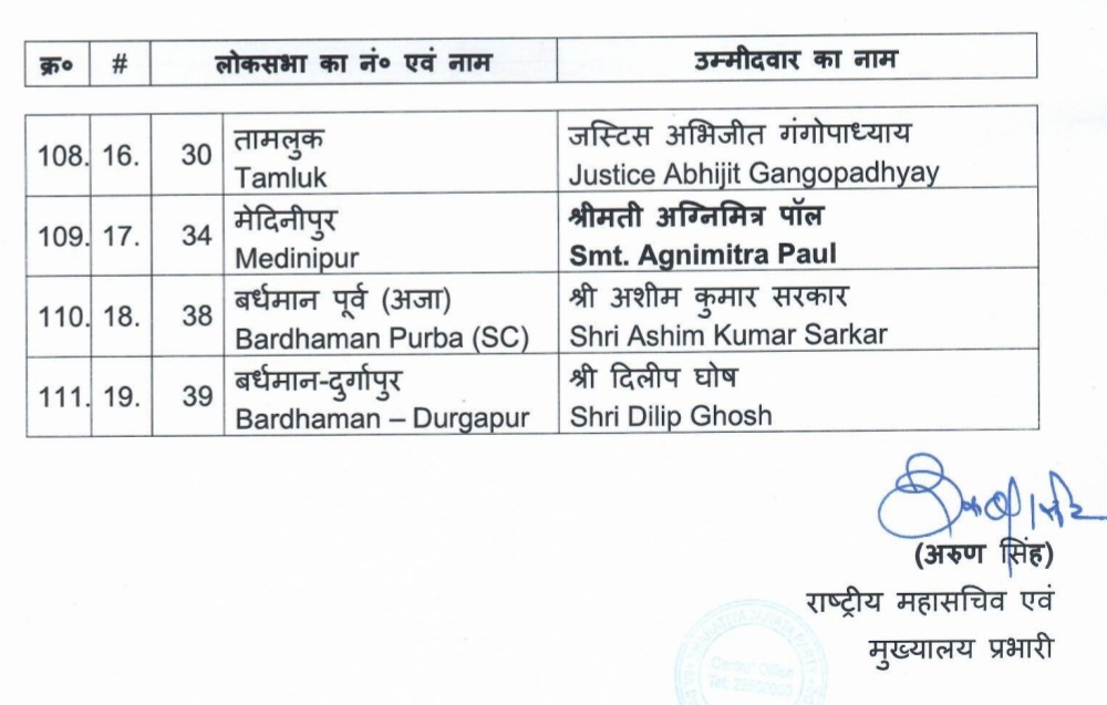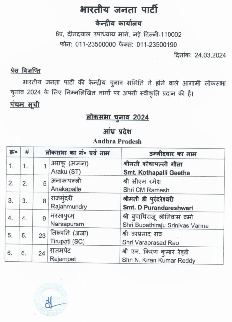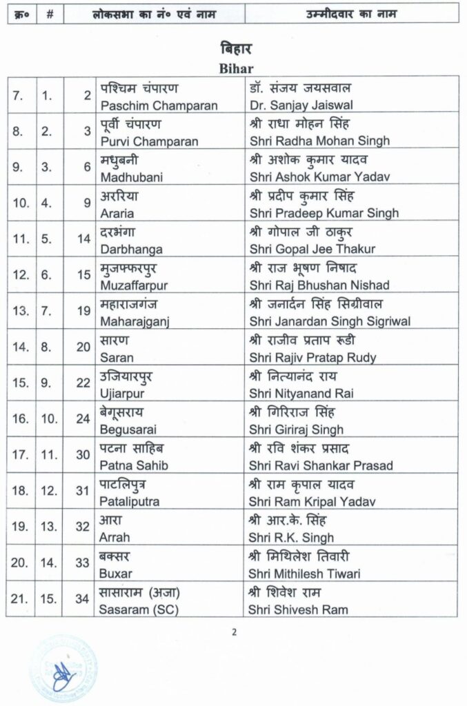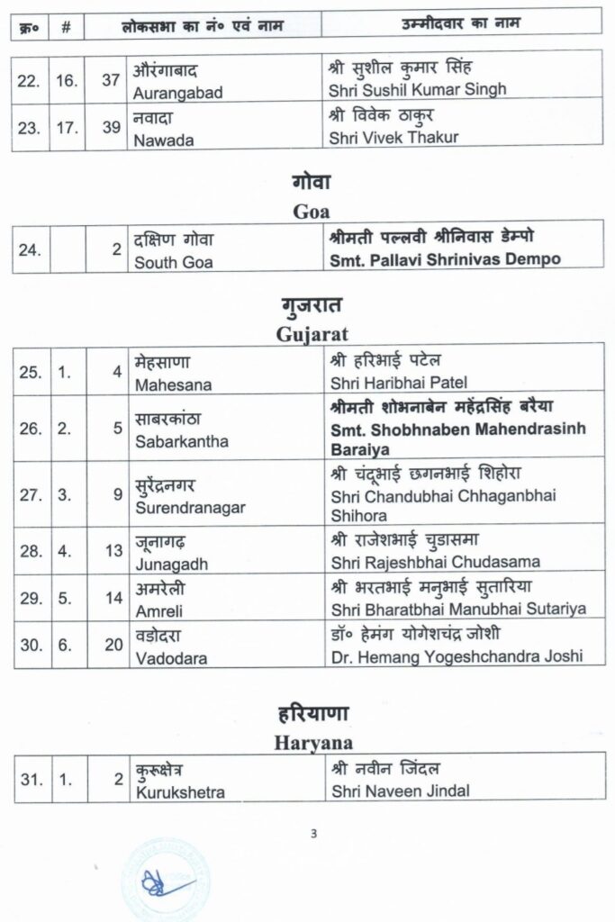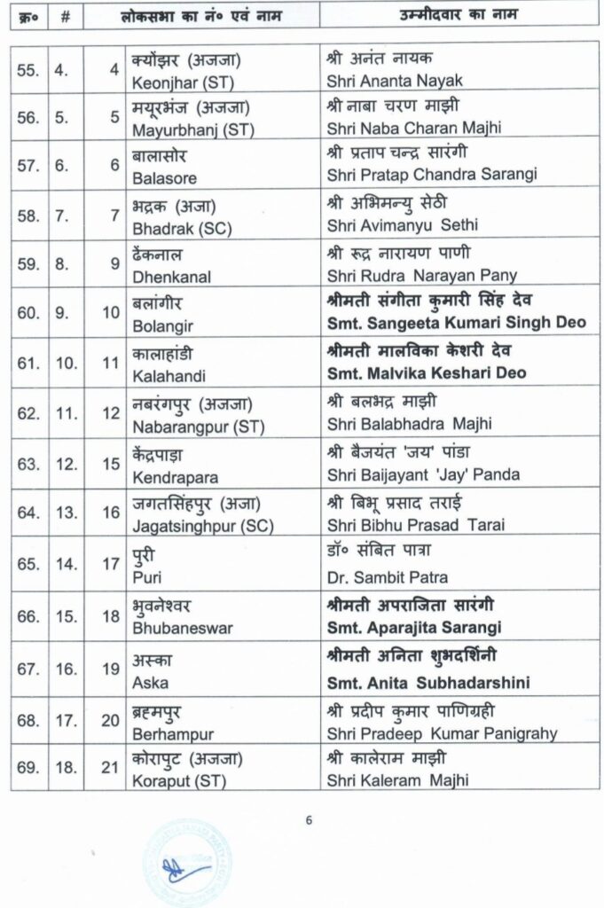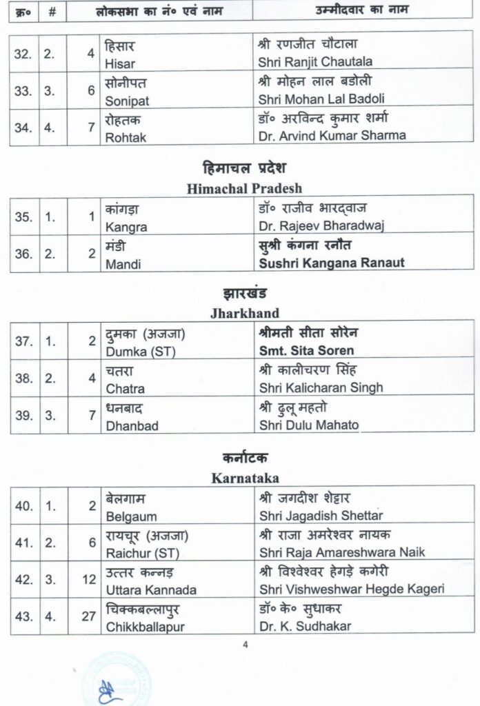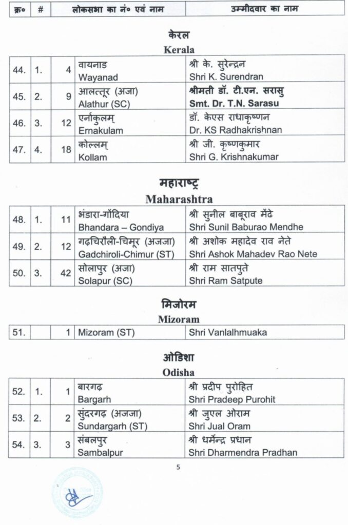 नई दिल्ली/हरिद्वार – बीजेपी ने लोकसभा चुनाव के मद्देनजर आज पांचवी लिस्ट जारी की है। लिस्ट में 111 उम्मीदवारों के नाम शामिल है। बीजेपी की लिस्ट में कई बड़े चहरों के नाम नहीं है, वहीं पार्टी ने कई नये उम्मीदवारों को चुनाव में उतारा है। देखिए पूरी लिस्ट