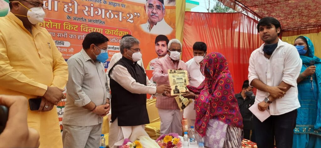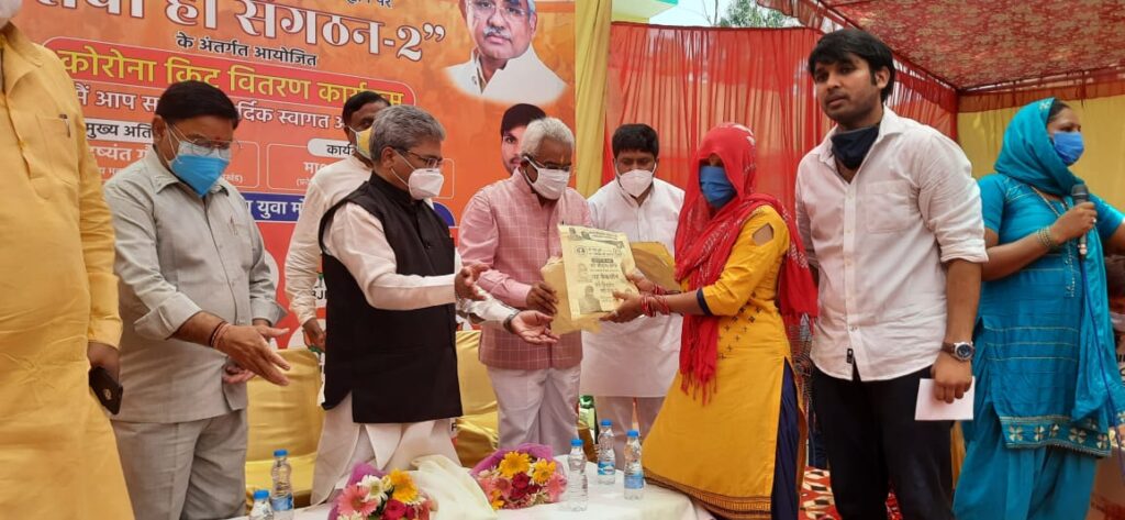 कार्यक्रम में मौजूद सैकड़ो ग्रामीणों को कोरोना सुरक्षा किट का वितरण किया गया। ओम ग्रुप ऑफ कॉलेज के चेयरमैन मुनीष सैनी द्वारा आसपास के 44 गाँवो में 5000 कोरोना किट बांटने का संकल्प लिया गया और इस काम के लिए प्रदेश अध्यक्ष मदन कौशिक ने उनका आभार और धन्यवाद व्यक्त किया।