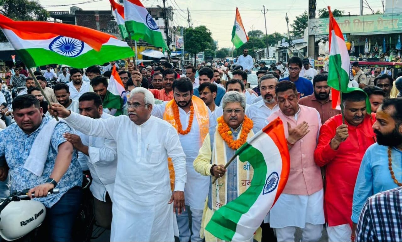भाजयुमो के राष्ट्रीय महामंत्री वैभव सिंह, प्रदेश अध्यक्ष शशांक रावत ने तिरंगा यात्रा का महत्व समझाते हुए कहा कि आजादी का पर्व भव्य रूप से मनाना है। भाजपा के जिलाध्यक्ष संदीप गोयल और भाजयुमो के जिलाध्यक्ष विक्रम भुल्लर ने कहा कि आजादी का महत्व समझाने के लिए भाजयुमो की ओर से निकाली जा रही तिरंगा यात्रा के माध्यम से लोगों को घरों पर झंडा लगाने के लिए प्रेरित किया जा रहा है। उन्होंने कहा कि प्रधानमंत्री नरेंद्र मोदी ने विश्व में देश का नाम रोशन किया है। आज पूरे विश्व में हर कोई भारत की ओर देख रहा है। तिरंगा यात्रा का समापन चंद्राचार्य चौक पर किया गया।