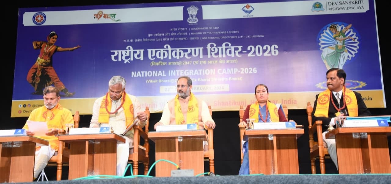 हरिद्वार – देव संस्कृति विश्वविद्यालय में राष्ट्रीय सेवा योजना (एनएसएस) के राष्ट्रीय एकीकरण शिविर का भव्य शुभारम्भ उत्तराखंड की कैबिनेट मंत्री रेखा आर्या ने किया। शिविर में देश के 13 राज्यों एवं 185 विश्वविद्यालयों से आए एक हजार से अधिक युवा प्रतिभाग कर रहे हैं। पारंपरिक वेशभूषा में उपस्थित युवाओं ने भारत की सांस्कृतिक विविधता और राष्ट्रीय एकता का सजीव चित्र प्रस्तुत किया।