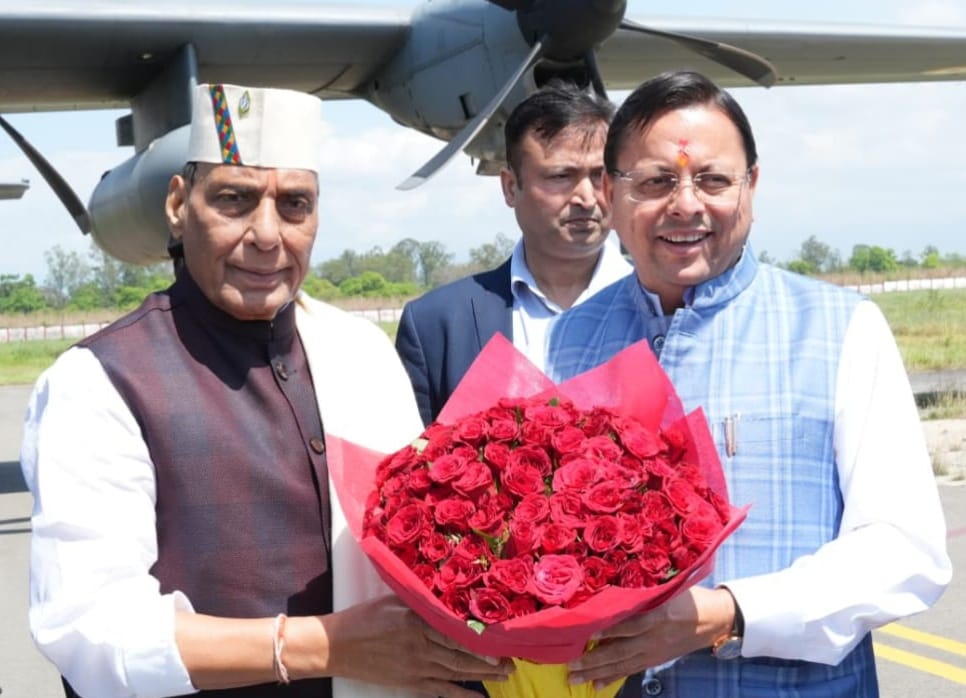 पंतनगर (उधमसिंह नगर) – मुख्यमंत्री पुष्कर सिंह धामी ने केंद्रीय रक्षा मंत्री राजनाथ सिंह के देवभूमि उत्तराखंड आगमन पर पंतनगर एयरपोर्ट पर उनका स्वागत किया।