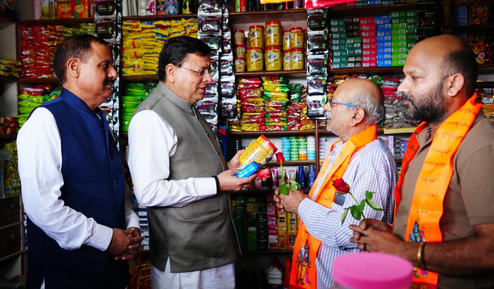 देहरादून – मुख्यमंत्री पुष्कर सिंह धामी ने बुधवार को देहरादून के कुँआवाला बाजार में “स्वदेशी अपनाओ” तथा जीएसटी की नई दरों के व्यापक प्रचार-प्रसार हेतु जनजागरूकता कार्यक्रम के अंतर्गत बाजार भ्रमण किया। इस दौरान मुख्यमंत्री ने दुकानदारों एवं स्थानीय नागरिकों से बातचीत कर उन्हें स्वदेशी उत्पादों के उपयोग के लाभों और कर प्रणाली में हाल ही में लागू की गई नई दरों के संबंध में जानकारी दी।