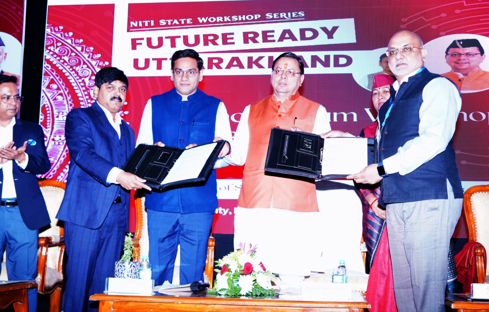 इस अवसर पर उपाध्यक्ष अवस्थापना परिषद विश्वास डाबर, मुख्य सचिव राधा रतूड़ी, उपाध्यक्ष सेतु आयोग राजशेखर जोशी, प्रमुख सचिव आर. के सुधांशु, नीति आयोग में राज्य से नोडल अधिकारी सोनिया पंत, सचिव आर. मीनाक्षी सुंदरम, शैलेश बगोली, कुलपति दून विश्वविद्यालय प्रो. सुरेखा डंगवाल, अपर सचिव विजय जोगदण्डे, एसीईओ सीपीपीजीजी डॉ. मनोज पंत, अपर सचिव मनमोहन मैनाली उपस्थित थे।