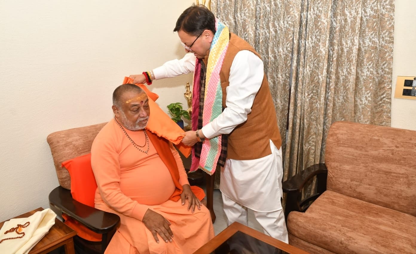 हरिद्वार, 5 फरवरी, उत्तराखंड के मुख्यमंत्री पुष्कर सिंह धामी एवं मध्य प्रदेश के मुख्यमंत्री मोहन यादव ने हरिद्वार के कनखल स्थित जगतगुरु आश्रम पहुंचकर शिष्टाचार भेंट की। मुख्यमंत्री ने जगद्गुरु शंकराचार्य स्वामी राजराजेश्वराश्रम महाराज को अंगवस्त्र भेंटकर महाराजी का आशीर्वाद प्राप्त किया।
