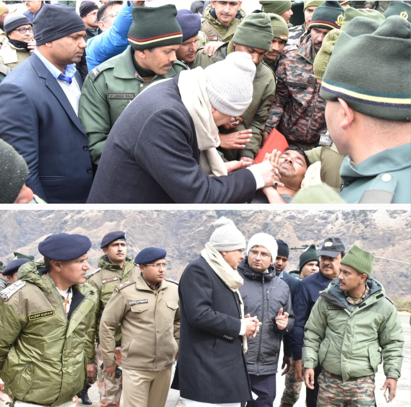 मुख्यमंत्री ने आर्मी हास्पिटल में उपचारधीन मजदूरों से मुलाकात कर हालचाल जाना। उन्होंने जिलाधिकारी को निर्देशित किया कि खोज बचाव कार्य में किसी प्रकार आवश्यक संसाधनों की कमी न रहे जो भी आवश्यकताएं हैं उनको समय से चिन्हित किया जाए। मुख्यमंत्री ने कहा कि केन्द्र सरकार से पूरी मदद मुहैया की जा रही है।