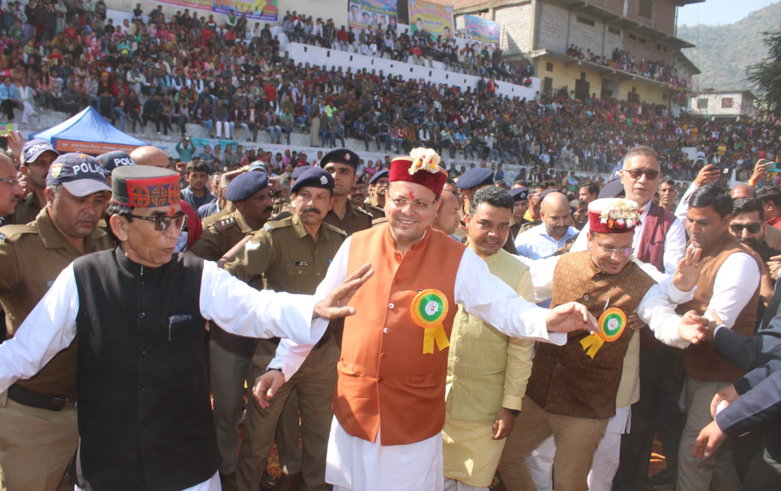 मुख्यमंत्री पुष्कर सिंह धामी आज यमुनाघाटी क्रीड़ा एवं सांस्कृतिक विकास समारोह में प्रतिभाग करने डामटा पहॅुंचे थे। सूरत स्टेडियम डामटा कांडी में आयोजित इस समारोह में हजारों की संख्या में जुटे स्थानीय लोगों ने पारंपरिक ढंग से मुख्यमंत्री का भव्य स्वागत किया। मुख्यमंत्री ने मेले में जुटे ग्रामीणों के साथ रवांई-जौनसार-जौनपुर क्षेत्र के पारंपरिक लोक नृत्य में भी हिस्सा लिया।