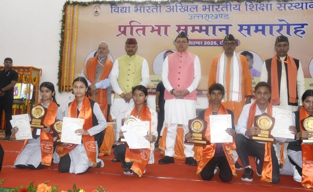 मुख्यमंत्री ने उत्तराखंड बोर्ड परीक्षा में मैरिट लिस्ट में स्थान प्राप्त करने वाले छात्रों को बधाई देते हुए कहा कि यह सम्मान सभी में एक नई ऊर्जा का संचार करेेगा, नया उत्साह लाएगा तथा भविष्य में जीवन में आने वाली सभी परीक्षाओं में भी श्रेष्ठ प्रदर्शन करने के लिए प्रेरित करेेगा। मुख्यमंत्री ने कहा कि भारत की सनातन संस्कृति और राष्ट्रभक्ति के विचारों को आत्मसात करते हुऎ विद्या भारती अखिल भारतीय शिक्षा संस्थान शिक्षा के क्षेत्र में बडा योगदान दे रहा है। इसके स्पष्ट प्रमाण हैं कि यदि कोई भी कार्य अच्छी सोच के साथ कड़ी मेहनत के साथ निरंतर किया जाए तो उस कार्य को सफल होने से रोका नहीं जा सकता है। मुख्यमंत्री ने कहा कि राष्ट्रीय स्वयंसेवक संघ की स्थापना के शताब्दी वर्ष में ये कार्यक्रम आयोजित किए जा रहे हैं, इस विशिष्ट कार्यक्रम में उपस्थित होना उनके लिये गर्व की बात है।