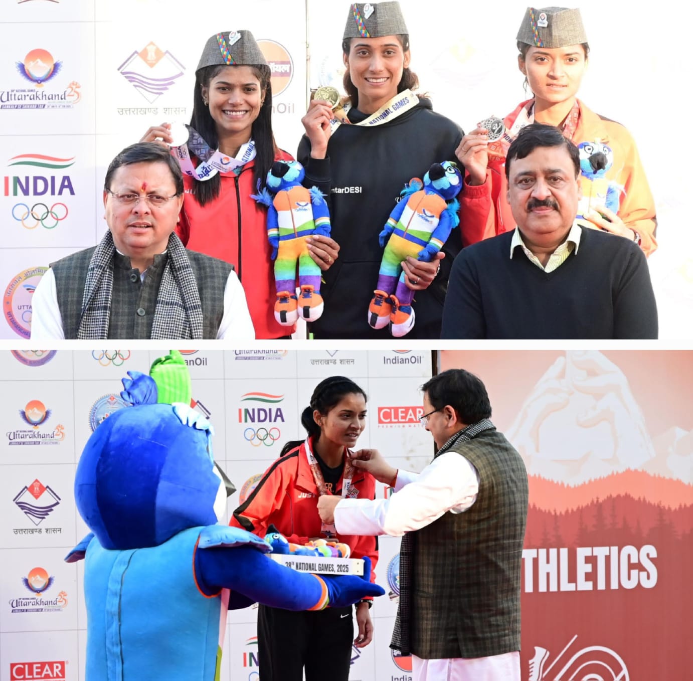 मुख्यमंत्री ने इस दौरान 5000 मीटर रेस (महिला) के विजेता खिलाड़ियों को मेडल पहनाकर सम्मानित भी किया। 5000 मीटर रेस (महिला) में उत्तराखंड की अंकिता ने प्रथम, महाराष्ट्र की संजीवनी जाधव ने दूसरा एवं महाराष्ट्र की पूनम ने तीसरा स्थान प्राप्त किया।