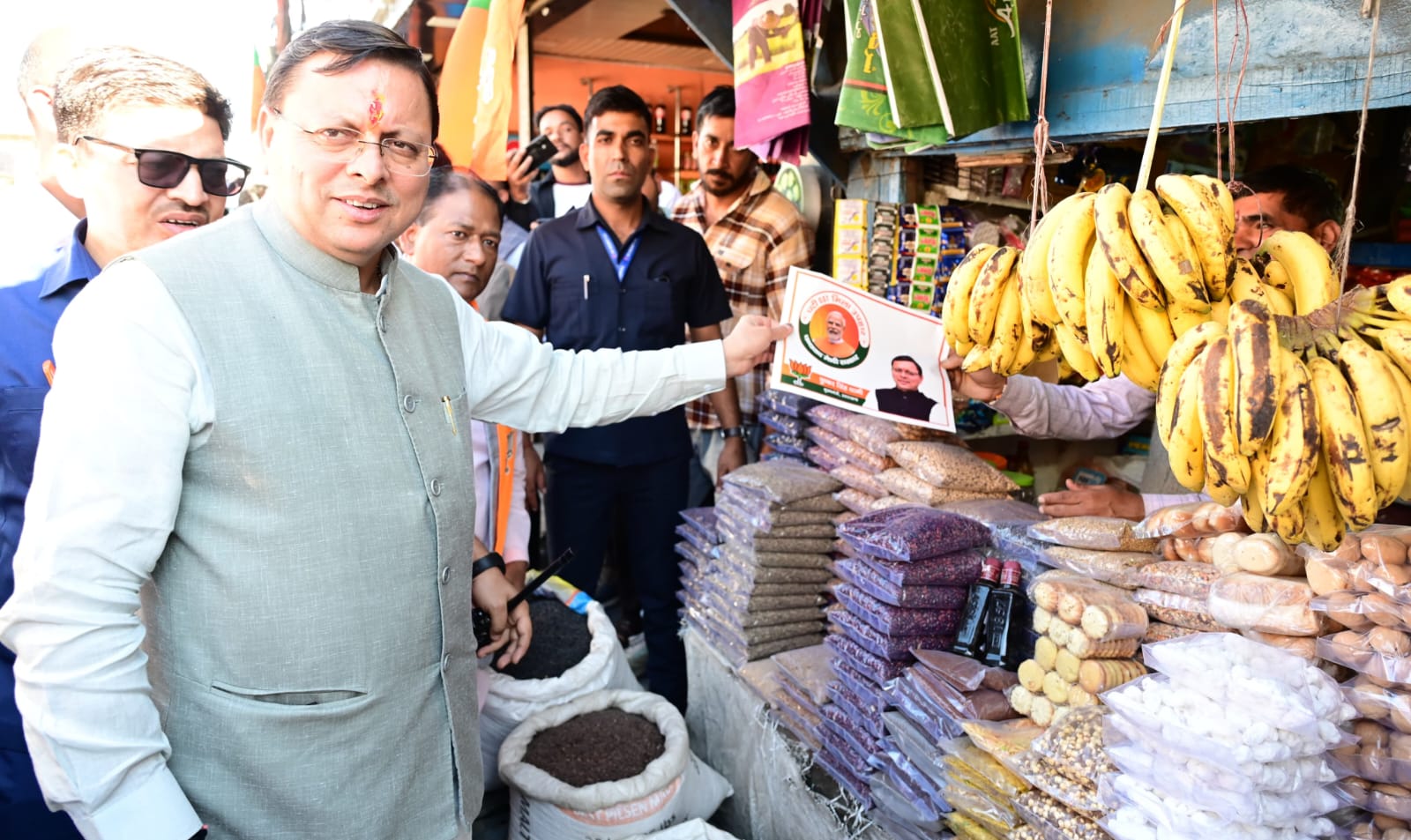 मुख्यमंत्री धामी ने बाज़ार में विभिन्न प्रतिष्ठानों, जिनमें प्रकाश तिवारी, तिवारी स्वीट्स, मयूख चौधरी की चौधरी वस्त्र भंडार तथा बस स्टेशन स्थित प्रकाश तिवारी के जनरल स्टोर पर पहुँचकर व्यापारियों से मुलाकात की और नए जीएसटी स्लैब पर उनकी राय जानी। उन्होंने व्यापारियों से विशेष रूप से आग्रह किया कि वे घटी हुई जीएसटी दरों के बारे में आम जन को भी पूरी जानकारी दें, ताकि उपभोक्ता को इसका सीधा और पूर्ण लाभ मिल सके।