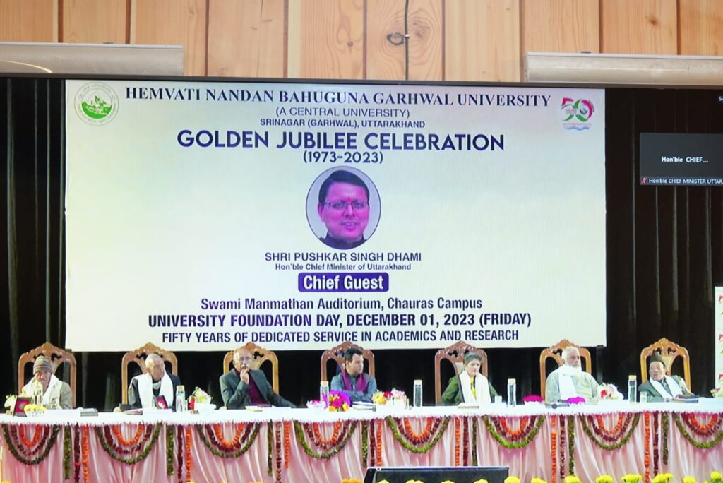 देहरादून – मुख्यमंत्री पुष्कर सिंह धामी ने हेमवती नंदन बहुगुणा गढ़वाल विश्व विद्यालय, श्रीनगर के स्थापना दिवस और स्वर्ण जयंती कार्यक्रम में वर्चुअल प्रतिभाग करते हुए विश्वविद्यालय के स्वर्ण जयंती समारोह की सभी को शुभाकामना दी। उन्होंने हिमालय पुत्र स्वर्गीय हेमवती नन्दन बहुगुणा का स्मरण करते हुए कहा कि यह विश्वविद्यालय उनकी विकासवादी सोच का परिणाम है। विश्वविद्यालय पिछले पांच दशकों से स्व. बहुगुणा जी के विकास के सपने को साकार करने हेतु प्रयासरत है। उन्होंने कहा कि पचास वर्षों से विश्वविद्यालय अपने दायित्वों का बखूबी निर्वहन कर रहा है, इसी का परिणाम है कि 2009 में इसे केंद्रीय विश्वविद्यालय के रूप में मान्यता मिली।