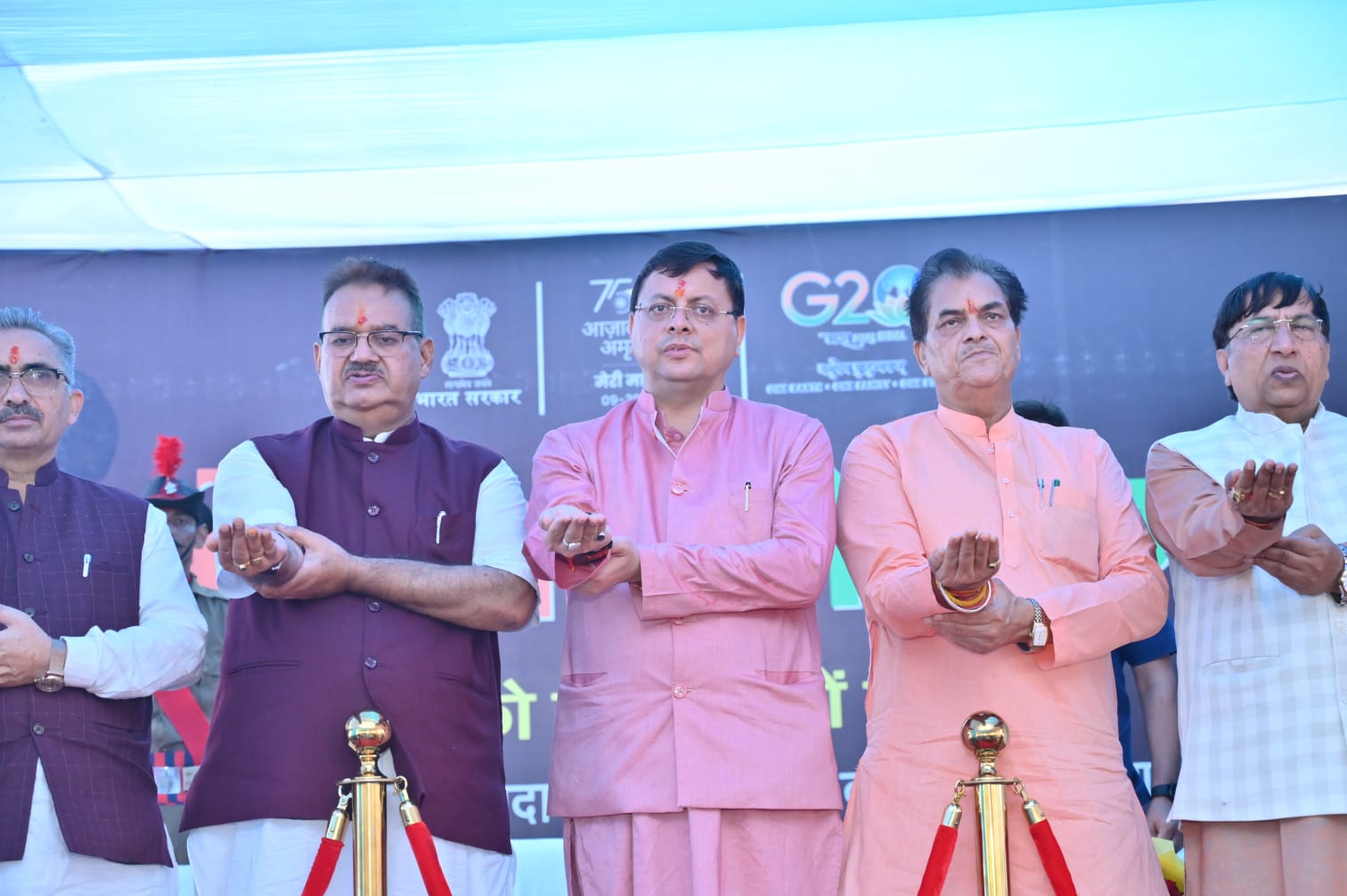 मुख्यमंत्री पुष्कर सिंह धामी ने ’मेरी माटी-मेरा देश’ कार्यक्रम में उपस्थित स्वतन्त्रता संग्राम सेनानियों एवं देश के लिए अपना सर्वोच्च बलिदान देने वाले वीर सैनिकों के परिजनों का स्वागत करते हुए कहा कि यह उनका सौभाग्य है कि आज मुख्य सेवक के रूप में उन्हें सभी को सम्मानित करने का अवसर प्राप्त हुआ। उन्होंने कहा कि प्रधानमंत्री श्री नरेन्द्र मोदी जी के दूरदर्शी नेतृत्व में हमें उन वीरों की वंदना करने का अवसर प्राप्त हुआ है, जिन्होंने देश की माटी की खातिर अपने प्राणों की आहुति दी। प्रधानमंत्री ने आजादी के अमृत काल में देशवासियों को पंच प्रण दिए हैं। भारत को विकसित राष्ट्र बनाने का प्रण, गुलामी की मानसिकता से मुक्ति का प्रण, भारत की समृद्ध विरासत पर गर्व एवं उसका संरक्षण करने का प्रण तथा देश की एकता और अखंडता को अक्षुण्ण रखने का प्रण। जिस प्रकार आज तक हमने प्रधानमंत्री जी द्वारा प्रारंभ किए गए प्रत्येक अभियान को अपना सम्पूर्ण सहयोग एवं समर्थन दिया है, उसी प्रकार मुझे विश्वास है कि हम ’मेरी माटी-मेरा देश’ अभियान को भी अपना पूर्ण सहयोग प्रदान करेंगे।