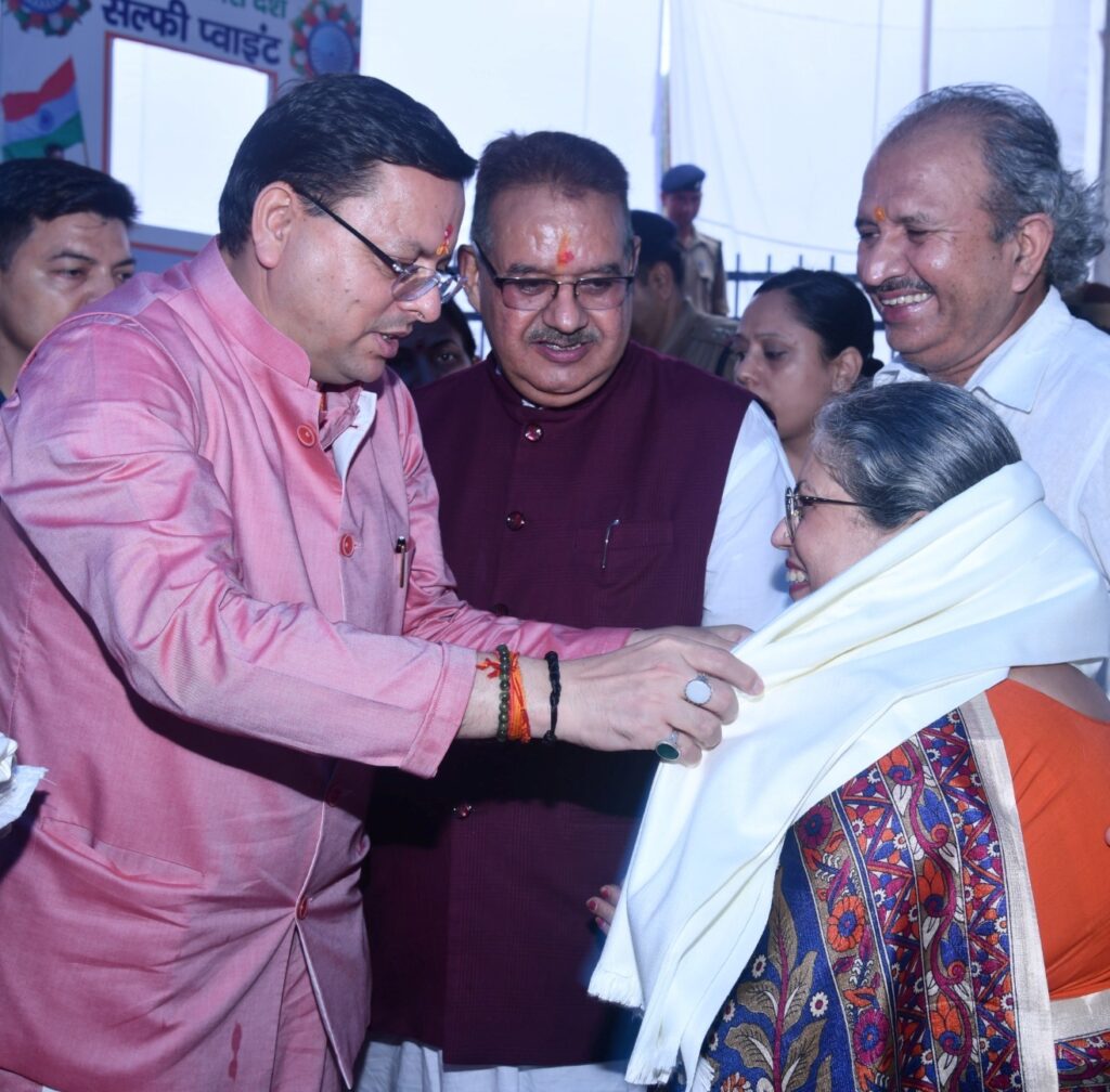 देहरादून – मुख्यमंत्री पुष्कर सिंह धामी ने रविवार को गुच्चु पानी, देहरादून में ‘मेरी माटी-मेरा देश’ अभियान के अन्तर्गत आयोजित ‘वीरों का नमन’ कार्यक्रम में प्रतिभाग किया। इस अवसर पर कैबिनेट मंत्री गणेश जोशी, प्रेमचन्द अग्रवाल, राज्यसभा सांसद नरेश बंसल, जिला पंचायत अध्यक्ष मधु चौहान, मेयर देहरादून सुनील उनियाल गामा, मेयर ऋषिकेश अनीता मंमर्गाइं, विधायक मुन्ना सिंह चौहान एवं सविता कपूर भी मौजूद थे।