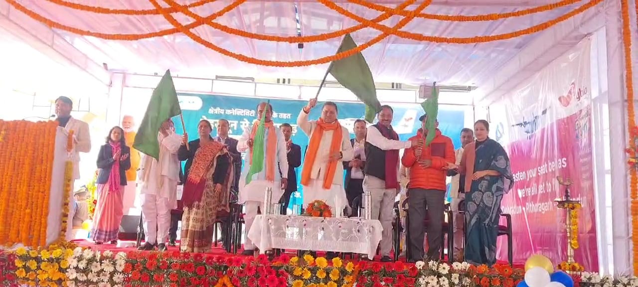 देहरादून – मुख्यमंत्री पुष्कर सिंह धामी ने मंगलवार को नैनी सैनी एयरपोर्ट से पिथौरागढ़ देहरादून हवाई सेवा का शुभारंभ झंडी दिखाकर किया। मुख्यमंत्री स्वयं भी हवाई जहाज में बैठकर देहरादून रवाना हुए। नैनी सैनी एयरपोर्ट में पिथौरागढ़ देहरादून हवाई सेवा का शुभारंभ करते हुए मुख्यमंत्री पुष्कर सिंह धामी ने हवाई सेवा प्रारंभ होने पर सभी को बधाई दी। उन्होंने प्रधानमंत्री नरेंद्र मोदी व नागरिक उद्यान मंत्री ज्योतिराज आदित्य सिंधिया का आभार व्यक्त किया।