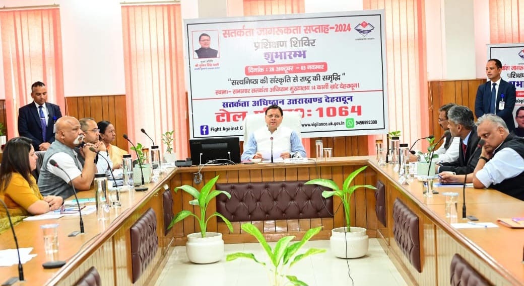 देहरादून – मुख्यमंत्री पुष्कर सिंह धामी ने हरिद्वार बाईपास रोड स्थित कारगी ग्राण्ट में सतर्कता अधिष्ठान निदेशालय द्वारा ‘सत्यनिष्ठा की संस्कृति से राष्ट्र की समृद्धि’ पर आयोजित सतर्कता जागरूकता सप्ताह एवं प्रशिक्षण शिविर का शुभारंभ किया। इस अवसर पर उन्होंने घोषणा की कि सतर्कता विभाग की कार्यप्रणाली को और अधिक प्रभावी बनाने के उद्देश्य से सर्विलांस, तकनीकी एवं वित्तीय विशेषज्ञों की एक टीम गठित की जाएगी। इस अवसर पर मुख्यमंत्री ने सतर्कता अधिष्ठान में सराहनीय कार्य करने वाले कार्मिकों को प्रशस्ति पत्र देकर सम्मानित भी किया।