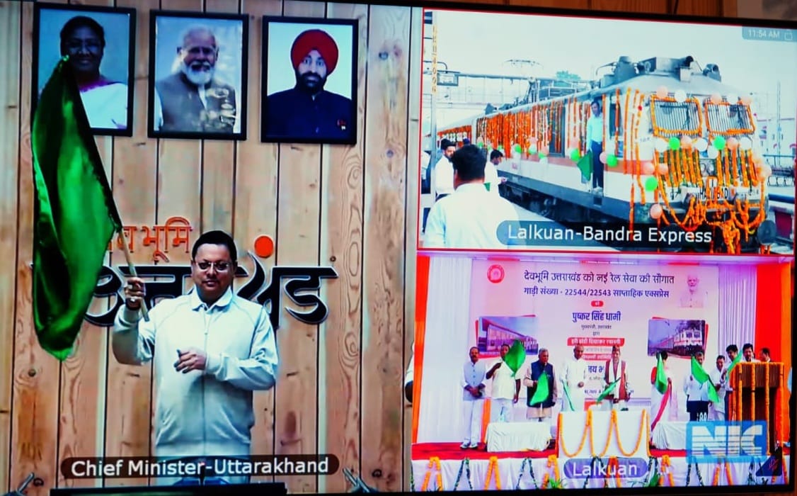 देहरादून – मुख्यमंत्री पुष्कर सिंह धामी ने सोमवार को वर्चुअल माध्यम से लालकुआं-बांद्रा सुपरफस्ट ट्रेन को हरी झण्डी दिखाकर रवाना किया।