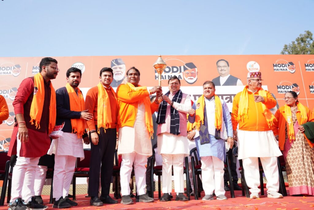 इस अवसर पर कैबिनेट मंत्री गणेश जोशी, भाजपा के प्रदेश अध्यक्ष महेन्द्र भट्ट, विधायक खजानदास, सविता कपूर, सांसद एवं भाजपा के युवा मोर्चा के राष्ट्रीय अध्यक्ष तेजस्वी सूर्य, भाजपा के युवा मोर्चा की राष्ट्रीय उपाध्यक्ष नेहा जोशी एवं पार्टी पदाधिकारी उपस्थित थे।