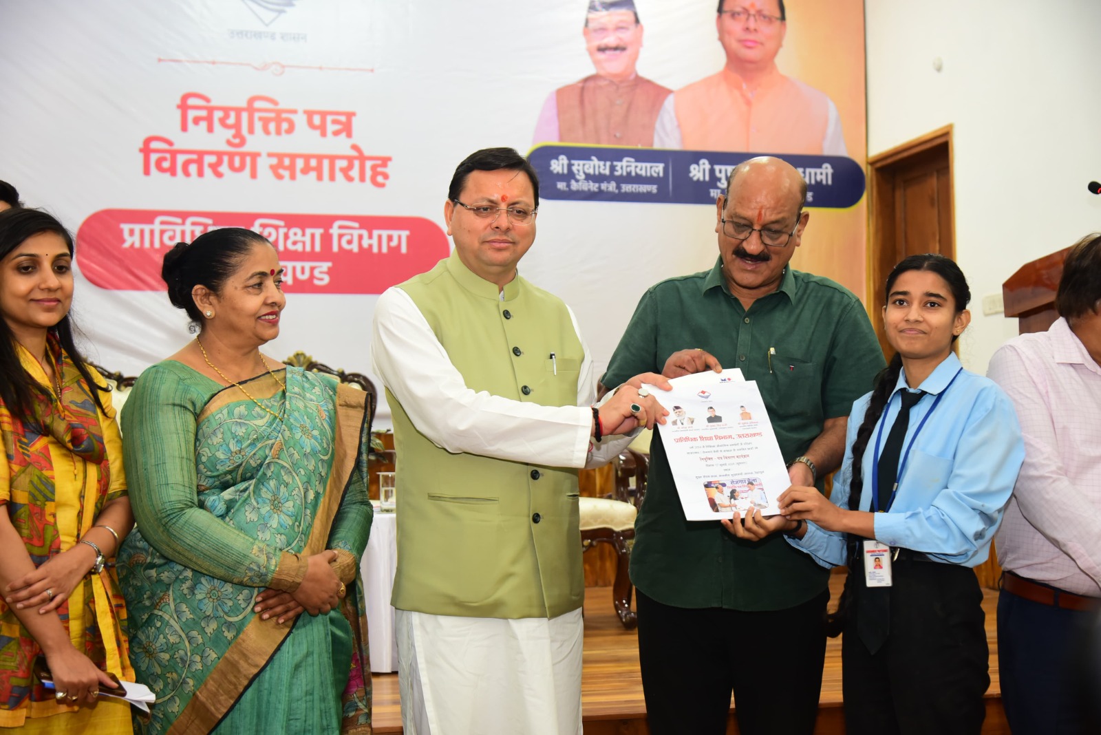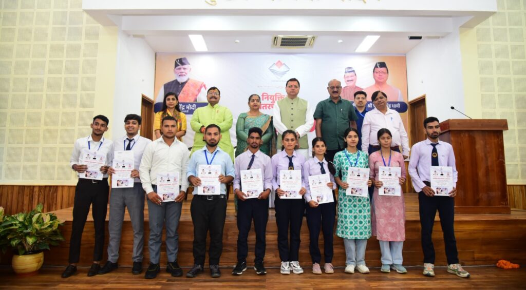 देहरादून – मुख्यमंत्री पुष्कर सिंह धामी ने बुधवार को मुख्यमंत्री आवास स्थित मुख्य सेवक सदन में प्राविधिक शिक्षा विभाग के अन्तर्गत राजकीय पॉलीटेक्निक संस्थानों से चयनित 212 अभ्यर्थियों को नियुक्ति पत्र प्रदान किये। राजकीय पॉलीटेक्निक संस्थानों के अंतिम वर्ष के इन छात्र-छात्राओं को विभिन्न कम्पनियों में नौकरी मिली है। इस वर्ष अभी तक राजकीय पॉलीटेक्निक संस्थानों से 65 प्रतिशत युवाओं को रोजगार मिल चुका है।