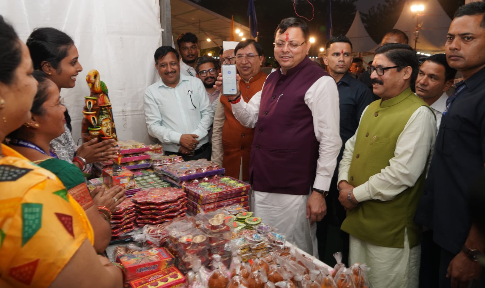 इस अवसर पर मुख्यमंत्री ने महिलाओं से वार्ता कर उनके उत्पादों के बार में जानकारी ली। मुख्यमंत्री ने महिलाओं द्वारा निर्मित मंडुवे के बने केक की सराहना की। उन्होंने, स्वयं सहायता समूह द्वारा निर्मित दीए की खरीदकारी कर ऑनलाइन माध्यम से पेमेंट भी की।