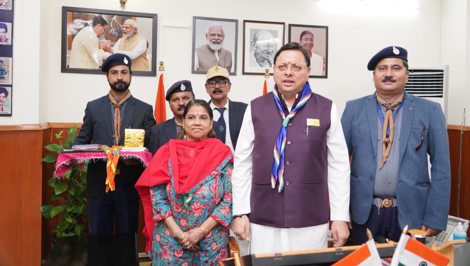 देहरादून – भारत स्काउट एंड गाइड उत्तराखंड के द्वारा संगठन के 75 वें स्थापना दिवस के उपलक्ष्य में शुक्रवार को सचिवालय में मुख्यमंत्री पुष्कर सिंह धामी को फ्लैग स्टिकर लगाकर अलंकृत किया गया।