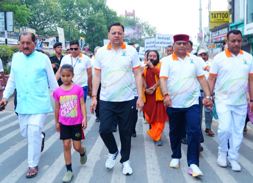 देहरादून – मुख्यमंत्री पुष्कर सिंह धामी ने रविवार को एम.के.पी कॉलेज, देहरादून में आयोजित ‘रन फॉर योगा’ कार्यक्रम में प्रतिभाग किया। इस अवसर पर मुख्यमंत्री ने युवाओं, बुजुर्गों महिलाओं को भी योग के प्रति जागरूक करने के लिए गांधी पार्क से एम.के.पी कॉलेज तक पैदल मार्च भी किया।