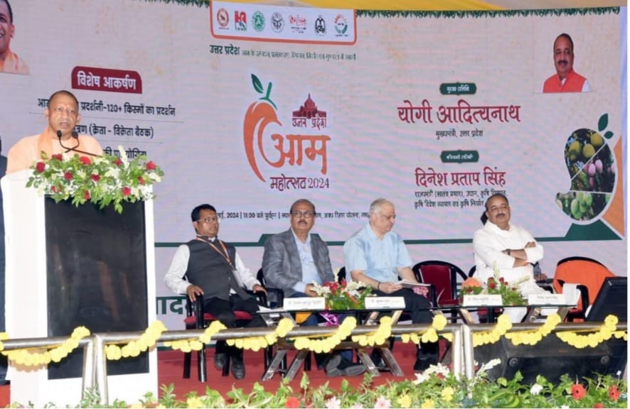 लखनऊ – मुख्यमंत्री योगी आदित्यनाथ ने आज यहां अवध शिल्पग्राम में तीन दिवसीय उत्तर प्रदेश आम महोत्सव-2024 का शुभारम्भ किया। उन्होंने जापान के लिए आम निर्यात हेतु कन्टेनर को हरी झण्डी दिखाकर रवाना किया। इस अवसर पर आयोजित कार्यक्रम को सम्बोधित करते हुए उन्होंने कहा कि प्रदेश सरकार किसानों के हितों के लिए पूरी प्रतिबद्धता से कार्य कर रही है। प्रधानमंत्री नरेन्द्र मोदी के मार्गदर्शन में किसानों, बागवानों तथा पशुपालकों के हितों के संवर्धन के लिए अनेक योजनाएं चलायी जा रही हैं। यह योजनाएं उनकी आमदनी को कई गुना बढ़ाने में सहायक साबित होंगी।