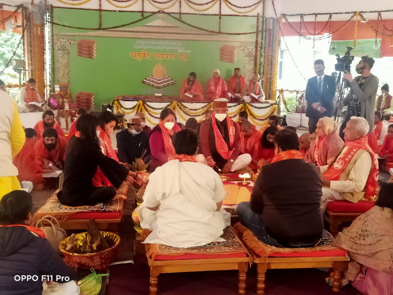 यज्ञ में बाबा रामदेव के साथ पतंजलि के मुख्य ट्रस्टी पदम सेन आर्य अपने सपरिवार सहित यज्ञ में सम्मलित हुए। आचार्यकुलम, वैदिक गुरुकुलम व गुरुकुलम के छात्र छात्राओं के द्वारा व धर्माचार्यो द्वारा मंत्रो उच्चारण के साथ इस यज्ञ का संचालन किया जा रहा है। मंत्रो उच्चारण की मधुर ध्वनि औऱ यज्ञ की पवित्र धुंए के बीच मुख्यमंत्री इस यज्ञ की पवित्रता का लाभ उठा रहे है।