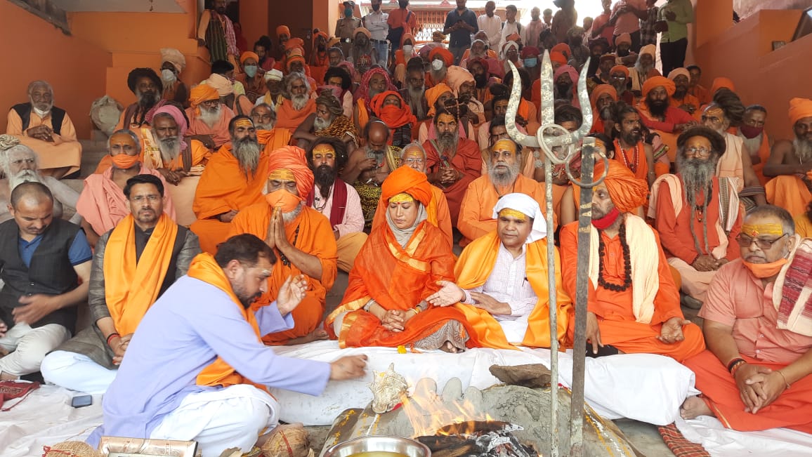 जूना अखाड़े के अंतराष्ट्रीय संरक्षक हरिगिरि महाराज और रेखा आर्य के पति गिरधारी लाल साहू समेत बड़ी संख्या में साधु संत मौजूद।