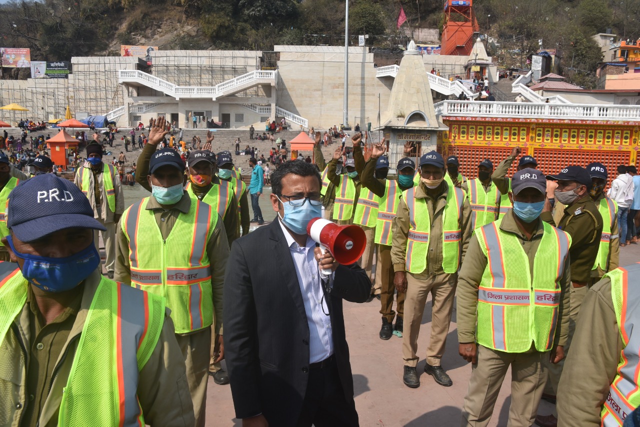 हरिद्वार – हरिद्वार जिलाधिकारी सी0 रविशंकर ने गंगा घाटों पर पीआरडी, होमगार्ड व वाॅलेंटियर की तैनाती किस प्रकार से रहेगी इसको लेकर मालवीय घाट पर पीआरडी जवानों को ब्रीफ किया। उन्होंने पीआरडी जवानों को पंक्तिबद्ध कराने के बाद सम्बोधित करते हुए कहा कि कुम्भ आयोजन पर पीआरडी जवानों को स्वंय कोरोना सुरक्षा उपायों को अपना कर आने वाले श्रद्धालुओं से भी इसका पालन कराना है। सभी पीआरडी जवानों का कोरोना टीकाकरण करने के निर्देश डीओ पीआरडी को दिये। स्नान दिनों पर किस प्रकार जवानों के द्वारा श्रद्धालुओं को गाइड करना है, क्या व्यवहार और आचरण अपनाना है किस प्रकार से मुस्तैद रहते हुए अपने दायित्वों का निर्वहन करना है समझाया।