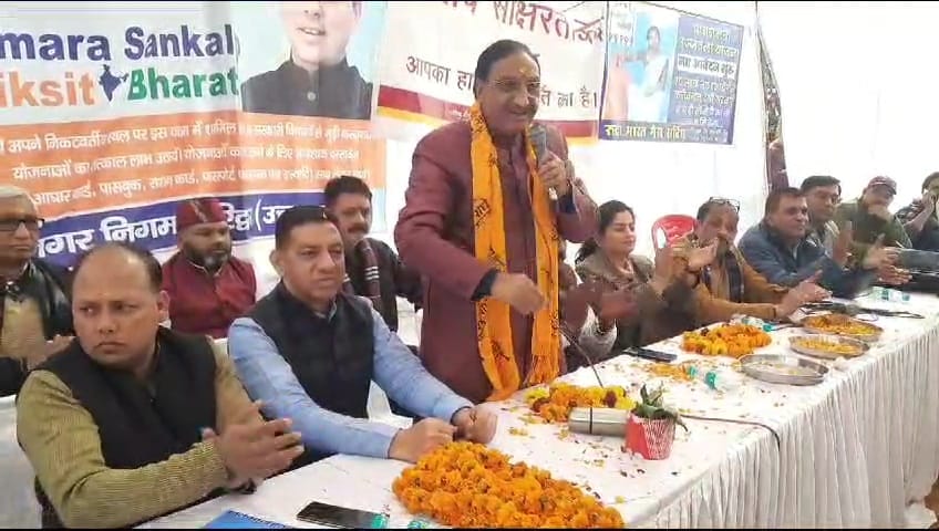 हरिद्वार – प्रधानमन्त्री नरेंद्र मोदी के आह्वान पर देशभर में विकसित भारत संकल्प यात्रा निकाली जा रही है। आज संकल्प भारत यात्रा का रथ हरिद्वार पहुंचा और हर की पौड़ी पर कैंप लगाकर लोगों को सरकारी योजनाओं के बारे में जानकारी दी गई। कार्यक्रम में पूर्व केंद्रीय मंत्री और भाजपा सांसद रमेश पोखरियाल निशंक ने शिरकत की और लोगो को विकसित भारत संकल्प यात्रा की उपलब्धियां गिनवाई।