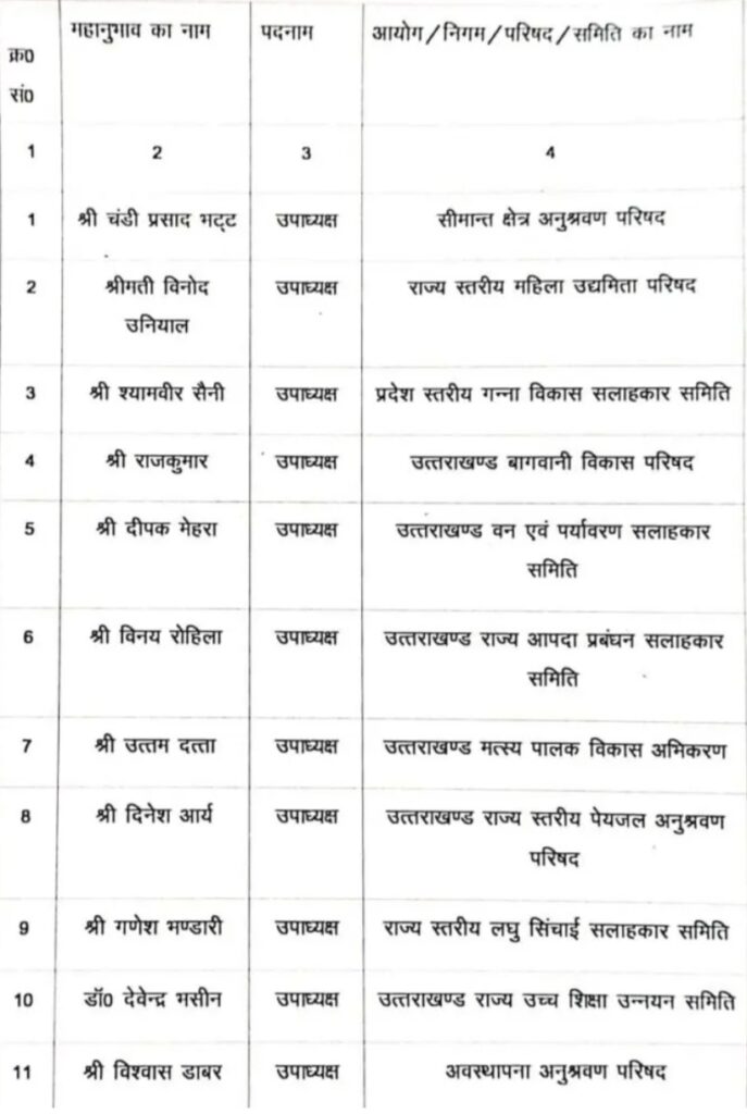 देहरादून – पुष्कर सिंह धामी सरकार ने प्रदेश के इन नेताओं को सौंपी है दायित्व, देखिए पूरी लिस्ट
