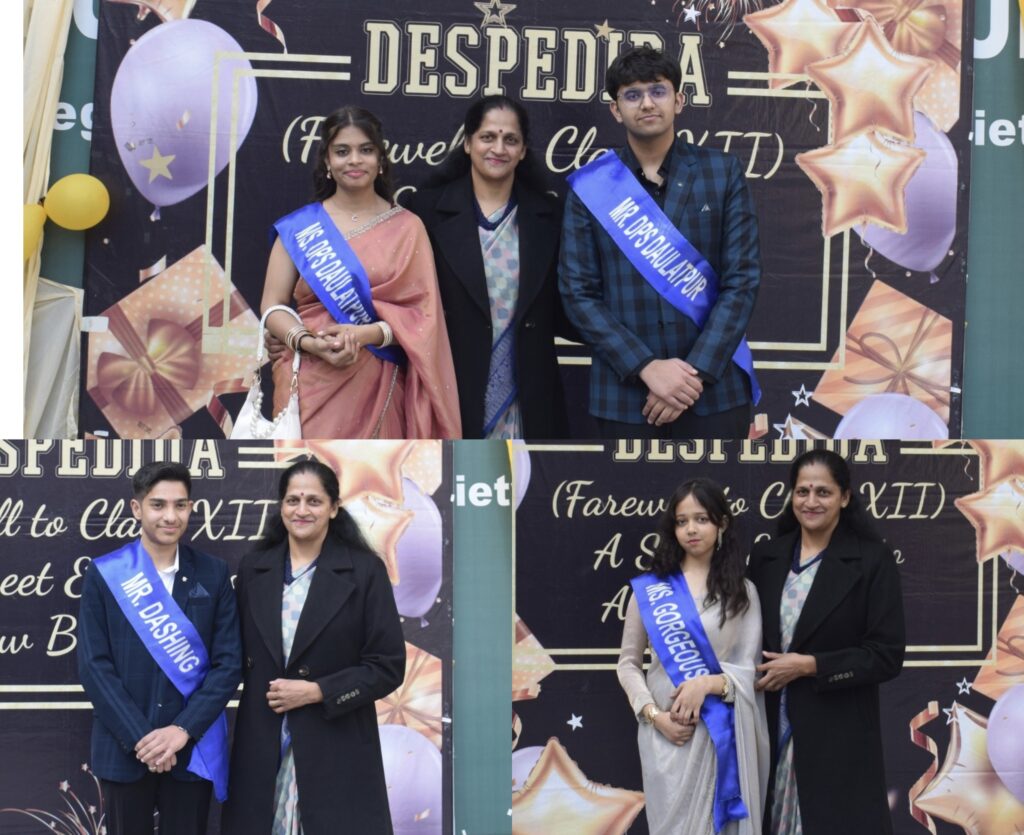 इस अवसर पर विभिन्न खिताबों का वितरण भी किया गया। आद्या शुक्ला को Ms. DPS, प्रखर पांडेय को Mr. DPS, आशी शर्मा को Ms. Gorgeous तथा माणिक्य को Mr. Handsome के खिताब से नवाजा गया। कार्यक्रम के दौरान एंकरों ने वरिष्ठ विद्यार्थियों की उपलब्धियों एवं स्मृतियों को साझा किया। विद्यालय की प्रधानाचार्य ने विद्यार्थियों को शुभकामनाएँ देते हुए उनके उज्ज्वल भविष्य की कामना की। समारोह का समापन हर्षोल्लास एवं भावनात्मक क्षणों के साथ हुआ।
