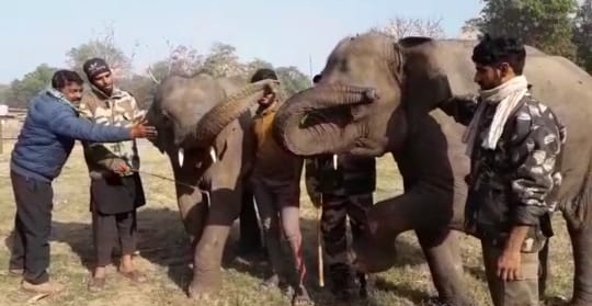 हरिद्वार – शीतलहर का प्रकोप लगातार बढ़ता जा रहा है, इन्सानों के साथ ही जानवर भी ठंड से परेशान है। राजाजी टाइगर रिजर्व में जंगल से बिछड़े हुए हाथियों के पालन पोषण में थोड़ी दिक्कतें जरूर बढ़ जाती है। यही वजह है कि ठंड से राजाजी टाइगर रिजर्व के हाथियों की सुरक्षा के लिए रेंज अधिकारी अनिल पैन्यूली द्वारा खास इंतजाम किए गए है। ठंड से हाथियों की तबियत खराब न हो इसके लिए चिकित्सकों की सलाह पर मेडिसिनल सप्लीमेंट्स दिए जा रहे है। शीतलहर और कोहरे के साथ साथ कडाके की ठंड भी हो रही है। अब एसे में इंसान तो किसी तरह अपने बचाव के तरीके तलाश लेता है मगर जानवर कहां जाएं। राजाजी टाइगर रिजर्व में शीतलहर के प्रकोप से पालतू हाथियों की तबियत खराब न हो इसके लिए हाथियों का खास ध्यान रखा जा रहा है। आपको बता दें कि यहां राधा, रंगीला, राजा के अलावा तीन शिशु हाथी रानी, जाॅनी और सुल्तान भी हैं। इनके देखभाल के लिए रेंज अधिकारी अनिल पैन्यूली ने खास इंतजाम किए हुए है। हाथियों को शीतलहर से बचाने के लिए हाथी बाड़े में तिरपाल की व्यवस्था की गयी है। तो वहीं हाथियों के लिए घास पत्तियां बिछायी जाती हैं ताकि हाथियों को ठंड न लगे। रेंज अधिकारी अनिल पैन्यूली ने बताया कि शीतलहर से हाथियों की सुरक्षा के लिए सभी तरह के इंतजाम किए गए है। इसके अलावा हाथियों को गन्ना और गुड़ नियमित रूप से खिलाया जा रहा है। उन्होने बताया कि पशु चिकित्सक नियमित रूप से हाथियों का चेकअप करने आते हैं और चिकित्सक की सलाह के बाद हाथियों को सर्दी से बचाव के लिए मेडिसिनल सप्लीमेंट्स भी दिए जा रहे हैं। हाथियों की देखभाल के लिए पांच कर्मचारी भी रखे है। वन्ही दूसरी ओर चारो ओर घना कोहरा होने के कारण पार्क अलर्ट मोड़ पर रख गया है। कई टीम घने कोहरे में चप्पे चप्पे पर निगाह रख रही है।