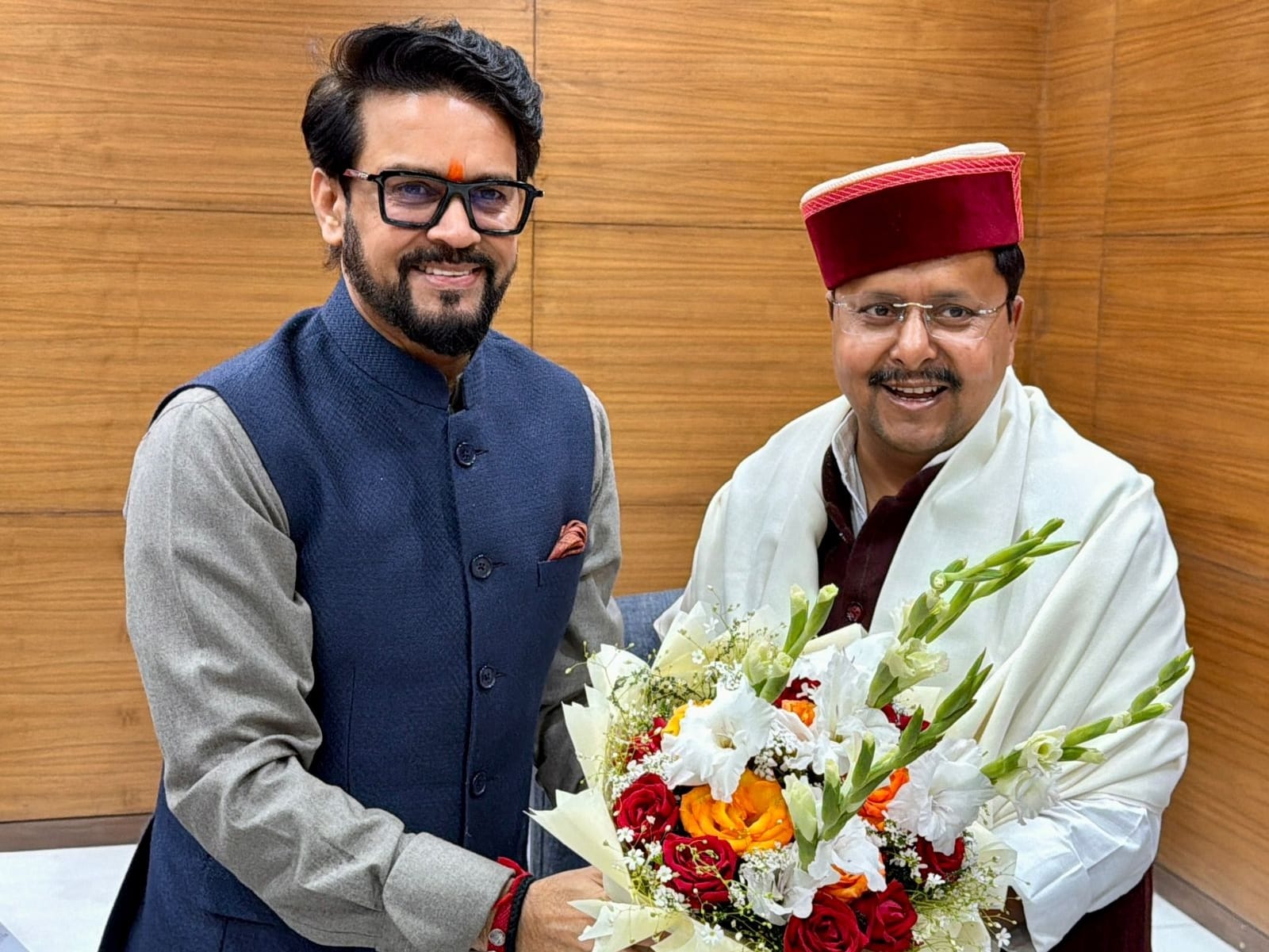 नई दिल्ली – पूर्व केंद्रीय मंत्री व हमीरपुर लोकसभा क्षेत्र से सांसद अनुराग सिंह ठाकुर ने आज भाजपा के राष्ट्रीय कार्यालय पर भारतीय जनता पार्टी के राष्ट्रीय कार्यकारी अध्यक्ष नितिन नबीन से भेंट कर उन्हें नवीन पदभार ग्रहण करने पर अपनी हार्दिक शुभकामनाएँ प्रेषित कीं।