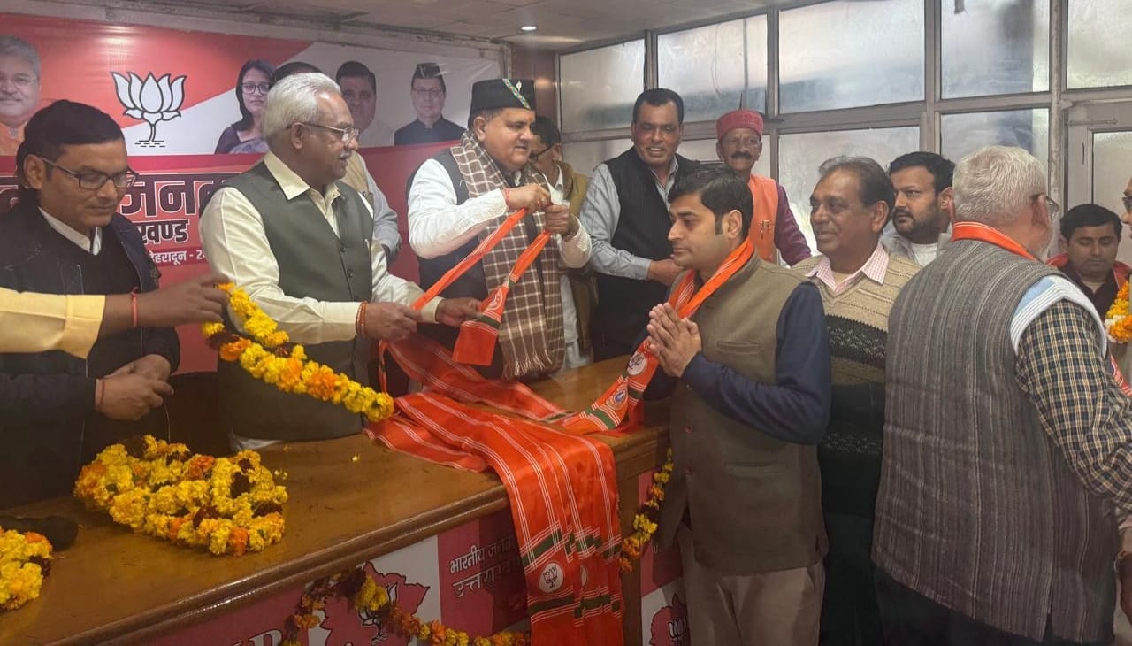 देहरादून – भारतीय जनता पार्टी प्रदेश कार्यालय देहरादून में प्रदेश अध्यक्ष महेंद्र भट्ट ने पूर्व प्रदेश अध्यक्ष विधायक हरिद्वार मदन कौशिक के नेतृत्व में पूर्व पार्षद गौरव भाटिया को पुनः भारतीय जनता पार्टी का पटका पहनाकर सदस्यता दिलाई। इस अवसर पर अजय शर्मा, अनिल शर्मा, महेश चंद्र, मुकेश कुमार, संत कुमार, राजकुमारी, रोहित धवन, निमित्त वासन, अमरीक सिंह, कविता गुप्ता, बिंदिया वर्मा आदि उपस्थित रहे।