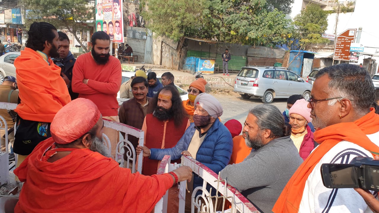 हरिद्वार – धर्मनगरी हरिद्वार में श्रीचंद्र भगवान की मूर्ति हटाने से संत समाज आक्रोशित हो गया है। रानीपुर मोड़ स्थित श्री चंद्राचार्य चौक पर भगवान श्रीचंद्र की ये मूर्ति स्थापित थी। बीती रात हरिद्वार रुड़की विकास प्राधिकरण द्वारा सौन्दरियकरण के लिए मूर्ति को हटा दिया गया जिससे संत समाज आक्रोशित हो गया। मौके पर बड़ी संख्या में अखाड़ो से जुड़े संत जुटने लगे और धरने पर बैठ गये। संत समाज के धरने से प्रशासन के हाथ पाँव फूल गए। आनन फानन में एचआरडीए सचिव व अपर कुम्भ मेलाधिकारी हरवीर सिंह मौके पर पहुंचे और संतों को मनाने का प्रयास किया लेकिन संतो ने उनकी बात को मानने से इनकार कर दिया। संत समाज शाम तक मूर्ति को पुनः स्थापित करने की मांग पर अड़े रहे। बड़ा अखाड़ा के अध्यक्ष श्रीमहंत महेश्वर दास महाराज ने कहा कि आज शाम तक तक यहां पर भगवान श्री चंद की मूर्ति को स्थापित किया जाए और यदि ऐसा नहीं होता तो आज शाम को वह आत्मदाह कर लेंगे। संतों का कहना है कि इसके लिए वह किसी को नुकसान नहीं पहुंचाने केवल अपने आप को पीड़ा पहुंचाने का काम करेंगे। वही सचिव हरवीर सिंह ने बताया कि सभी चौराहों के सौंदर्यीकरण का काम चल रहा था और सौंदर्यीकरण के लिए ही इस मूर्ति को हटाया गया लेकिन वह खेद व्यक्त करते हैं कि उन्होंने इससे पहले साधु संतों से विश्वास में नहीं लिया। वही उन्होंने संतो को आश्वासन दिया कि आज शाम तक मूर्ति को पुनः स्थापित करने का काम पूरा हो जाएगा। लेकिन उनके आश्वासन पर भी संत नही माने और मूर्ति स्थल चौक पर ही बैठे रहे। धरना देने वाले संतो में बड़ा अखाड़ा के कोठारी दामोदरदास , महेश्वर दास , महंत दुर्गा दास महाराज और महन्त कामलदास महाराज समेत कई संत शामिल रहे।