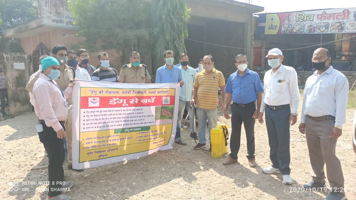 हरिद्वार – जिलाधिकारी सी0 रविशंकर के निर्देशों का पालन करते हुए डेगू के विरूद्ध अभियान के अन्तर्गत डे आफिसर ज्योति शंकर मिश्र, सहायक संभागीय परिवहन अधिकारी, रूड़की द्वारा डेंगू के खिलाफ की जाने वाली कार्रवाई के सम्बन्ध में सभी को सक्रिय करते हुये लगातार समन्वय स्थापित किया गया। अभियान से जुड़े लोगों को डेंगू के लार्वा के स्रोत और डेंगू के लार्वा को नष्ट करने तथा आवश्यक रसायन एवं कीट नाशक के बारे में जानकारी दी गयी। ज्योति शंकर मिश्र के नेतृत्व में जनपद हरिद्वार के सभी समस्त आवासीय क्षेत्रों, कबाड़ की दुकानों, धर्मशालाओं, होटलों, कार्यालयों तथा इन स्थानों पर रखे गये फ्रिज, कूलर, गमलों, ट्यूब-टायर, अन्य अनावश्यक वस्तुओं आदि में विशेष ध्यान केन्द्रित करते हुये, खासकर डेंगू पाॅजिटिव पाये गये व्यक्तियों के निवास स्थलों में, जनपद के समस्त नगर निगम, नगर पालिका, नगर पंचायत के नगर आयुक्त और अधिशासी अधिकारी, समस्त खण्ड विकास अधिकारी, अपर मुख्य अधिकारी जिला पंचायत के सहयोग से सक्रिय रूप से जन-जागरूकता सहित छिड़काव का अभियान चलाया गया और कई स्थानों पर लार्वा नष्ट किया गया, जिसमें सहायक संभागीय परिवहन कार्यालय रूड़की के समस्त कार्मिकों की विशेष भूमिका रही।
