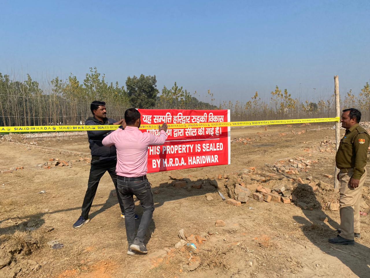 हरिद्वार – हरिद्वार रुड़की विकास प्राधिकरण का आज भी अनाधिकृत निर्माण प्लाटिंग को सील किये जाने का अभियान जारी रहा। अनाधिकृत निर्माण के विरुद्ध आज सराय रोड़, ज्वालापुर में अक़ीर चंद द्वारा लगभग 6 बीघा भूमि पर दो अवैध कॉलोनियों मे की जा रही प्लाटिंग को सील किया गया है। इसके अलावा अहनुल की ग्राम एक्कड़ में लगभग 6 बीघा, नफीस की 7 से 8 बीघा भूमि और अन्य एक व्यक्ति यासीन द्वारा भूमि पर अनाधिकृत प्लाटिंग की जा रही थी।