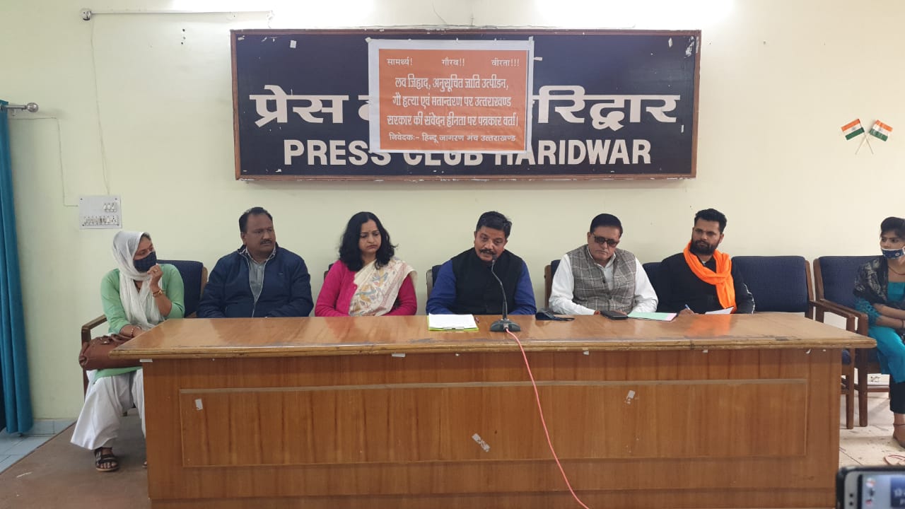 हरिद्वार – हरियाणा में हुए निकिता हत्याकांड के बाद देशभर में लव जिहाद के खिलाफ सख्त कानून बनाने की माँग तेजी से उठ रही है। सामाजिक संगठन हिन्दू जागरण मंच ने भी उत्तराखंड सरकार से लव जिहाद रोकने के लिए सख्त कानून बनाने की माँग की है। हरिद्वार में हिन्दू जागरण मंच के उत्तराखंड अध्यक्ष कृष्ण सिंह बोरा ने आरोप लगाया कि उत्तराखंड में लव जिहाद के मामले बढ़ते जा रहे है इसे रोकने के लिए शासन प्रशासन नाकाम है। वो सरकार से मांग करते है कि लव जिहाद को रोकने के लिए सरकार जल्द ही सख्त कानून बनाये। इसके साथ ही उन्होंने ये आरोप भी लगाया कि हरिद्वार जनपद में भी लव जिहाद के साथ ही गोकशी के मामले बढ़ रहे है इसको लेकर भी सख्त कदम उठाने की आवश्यकता है। धर्म विशेष के लोग झूठ बोलकर सनातन धर्म की युवतियों का शोषण कर रहे है। इसलिएसख्त कानून बनाने के लिए हिन्दू जागरण मच के कार्यकर्ताओं द्वारा प्रदेशभर में जनजागरण अभियान चलाया जाएगा और सभी जिलों में अभी प्रेस वार्ता की जा रही है उसके बाद धरने प्रदर्शन और ज्ञापन के माध्यम से अधिकारियों का घेराव किया जाएगा और तब भी उनकी ये मांग पूरी नही होती तो वे उग्र आंदोलन भी करेंगे। प्रेस वार्ता के दौरान हिन्दू जागरण मंच के संपर्क प्रमुख नाथीराम सैनी, विधि प्रमुख बिजेंद्र ,प्रदेश संयोजिका रेणु उपाध्याय , मनीष चौहान स्वतंत्र सैनी लोकेश कश्यप भी मौजूद रहें।