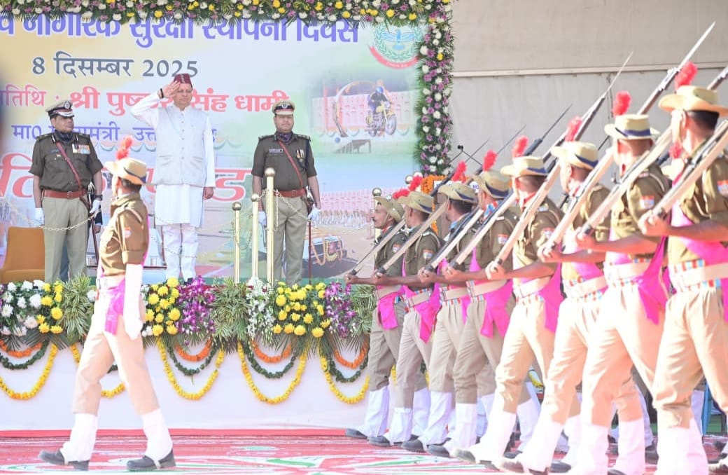 देहरादून – मुख्यमंत्री पुष्कर सिंह धामी ने सोमवार को ननूरखेड़ा, देहरादून में होमगार्ड्स स्थापना दिवस पर आयोजित कार्यक्रम में प्रतिभाग कर रैतिक परेड का निरीक्षण किया। इस दौरान मुख्यमंत्री ने होमगार्ड्स एवं नागरिक सुरक्षा विभाग की स्मारिका 2025 और विभागीय कैलेंडर 2026 का विमोचन किया। मुख्यमंत्री ने सेवा प्रदत्त एवं दिवंगत होमगार्ड के आश्रितों को चेक भी वितरित किए।