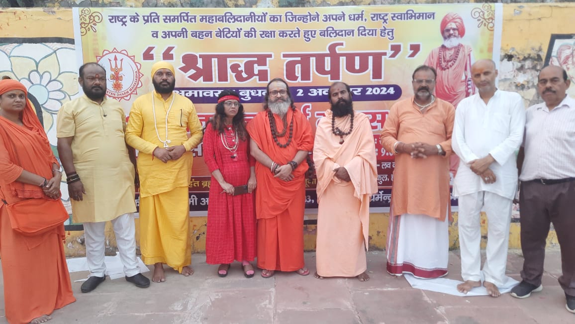 श्रीमहंत ब्राहानंद गिरी महाराज ने कहा कि राष्ट्र के प्रति समर्पित, देश रक्षा में अपने प्राणों की आहुति देने वाले बलिदानियों के लिए श्राद्ध तर्पण किया जाएगा। पूरे देश में सनातन संस्थाएं श्राद्ध तर्पण में भाग लेंगी। श्री अखंड परशुराम अखाड़े के अध्यक्ष पंडित अधीर कौशिक ने कहा कि देश के लिए अपने प्राणों का बलिदानियों को सदैव याद रखना चाहिए। युवा पीढ़ी को संस्कार संस्कृति को जानने का भी मौका मिलेगा। दो अक्टूबर को श्राद्ध तर्पण में संत महापुरूष, सामाजिक संस्थाएं एवं युवा प्रतिभाग करेंगे।