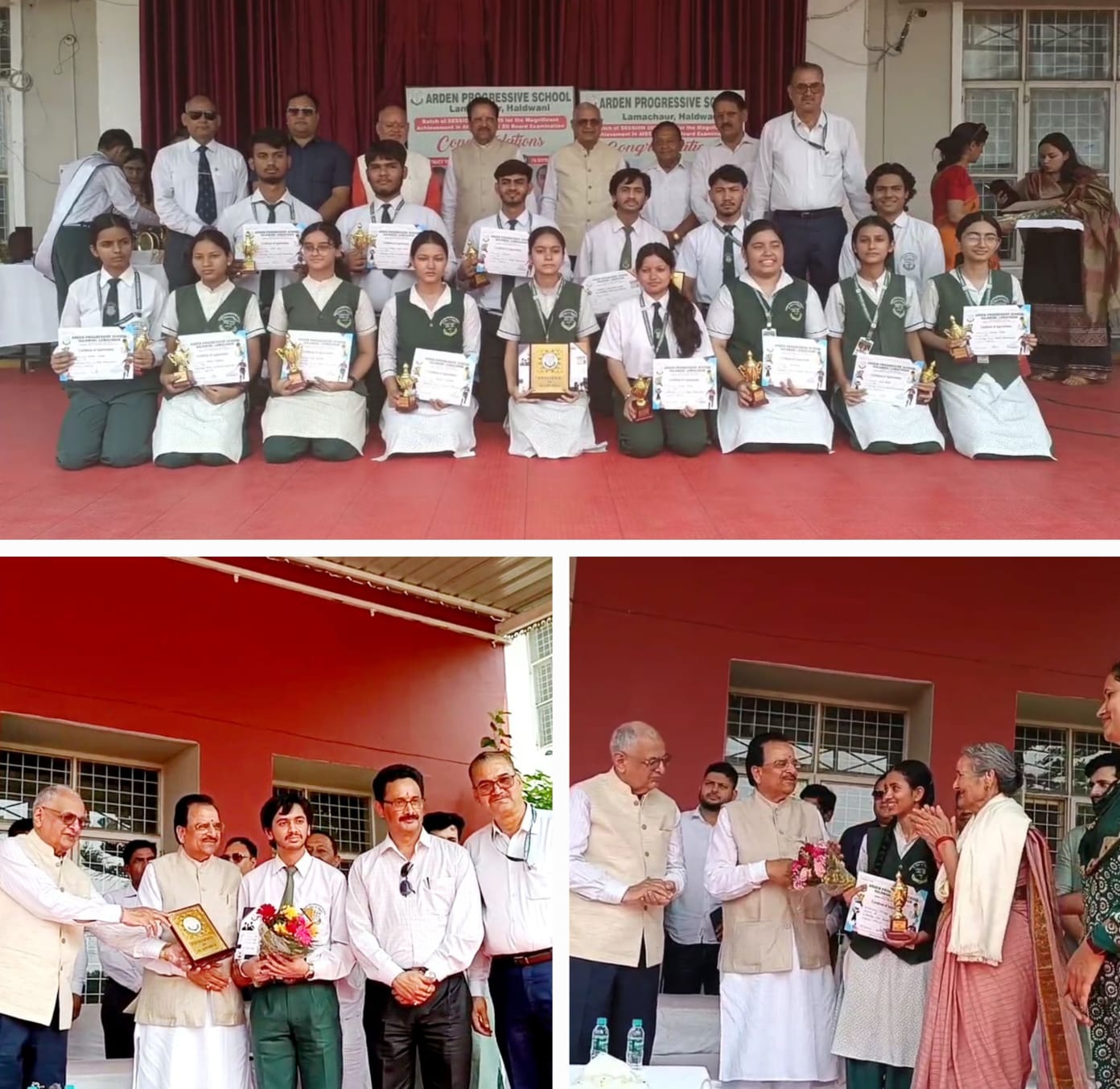 हल्द्वानी (नैनीताल) – आर्डन प्रोग्रेसिव स्कूल में आज एक भव्य सम्मान समारोह का आयोजन किया गया, जिसमें वर्ष 2025 की बोर्ड परीक्षाओं में उत्कृष्ट प्रदर्शन करने वाले विद्यार्थियों को सम्मानित किया गया। समारोह में शिक्षा और समाज के विभिन्न क्षेत्रों से जुड़ी कई प्रतिष्ठित हस्तियाँ उपस्थित रहीं। मुख्य अतिथि के रूप में सांसद अजय भट्ट, सुप्रीम कोर्ट के सेवानिवृत्त न्यायाधीश प्रफुल्ल पंत, हल्द्वानी के मेयर गजराज बिष्ट ने विद्यालय की टॉपर छात्राओं एवं छात्रों को सम्मानित किया।
